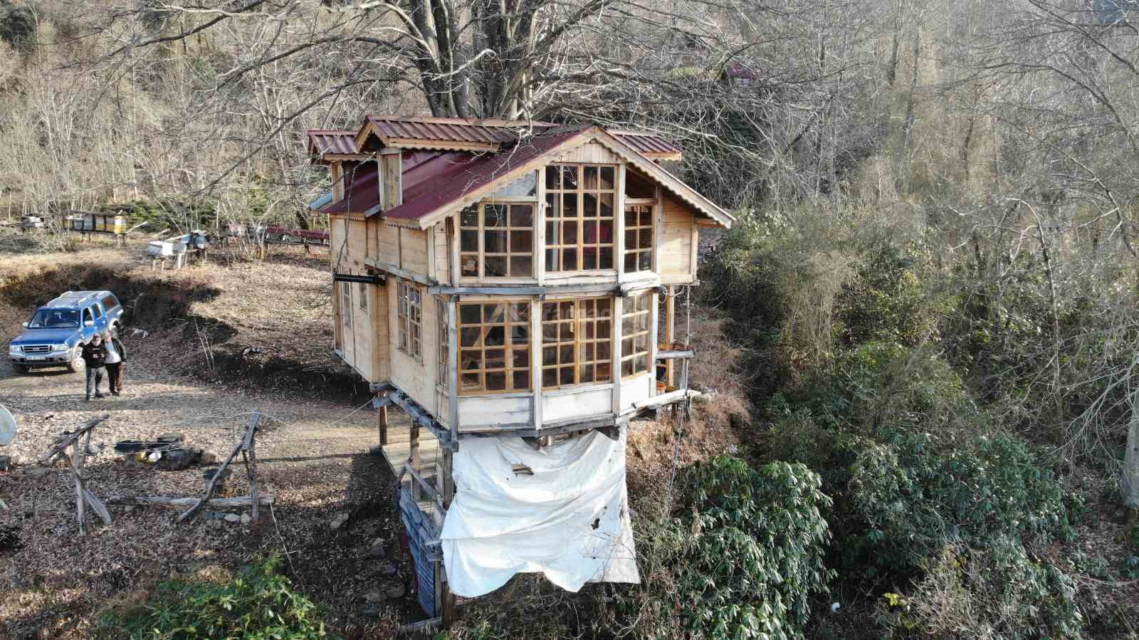 150 yıllık ağacın gövdesine kimseden destek almadan 2+1 ev yaptı