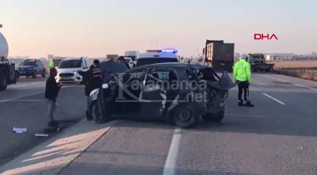 Çarpmanın etkisiyle savrulan Gülsoy, idaresinde otomobil, refüjü aşıp karşı şeritten gelen Salim Işıkcı'nın kullandığı 42 L 1158 TIR'a çarptı. Kazada sürücülerden Şeyda Gülsoy yaralandı.