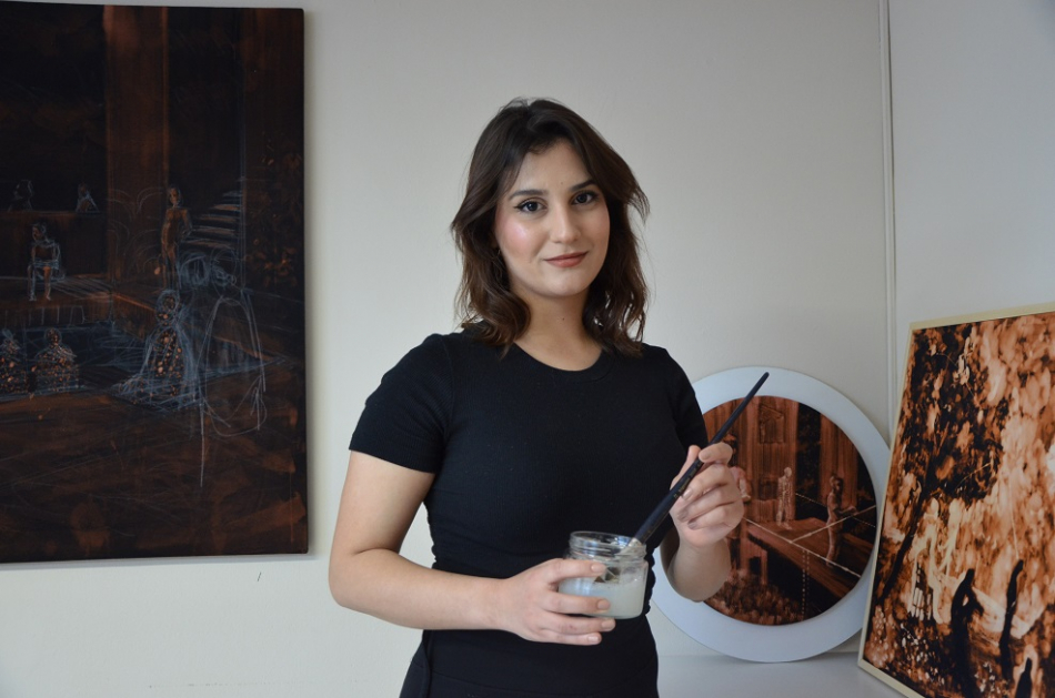 Mekansızlaşma, insan-mekan ilişkileri, bireyler arası iletişim ve insanların kendi kurduğu mekanlarda oluşturduğu değişim ile dönüşümleri ele alarak hikayeler oluşturuyorum. Aslında bunları yaparken ruh halim çok etkili oluyor. Çünkü fırça değerlerim, asidin yoğunluğu, seyrekliği, ışık-gölge değerleri değişkenliğe uğruyor ve sergileme sürecinde izleyiciyle buluştuğunda, izleyicide de çok farklı etkiler yaratıyor" diye konuştu.