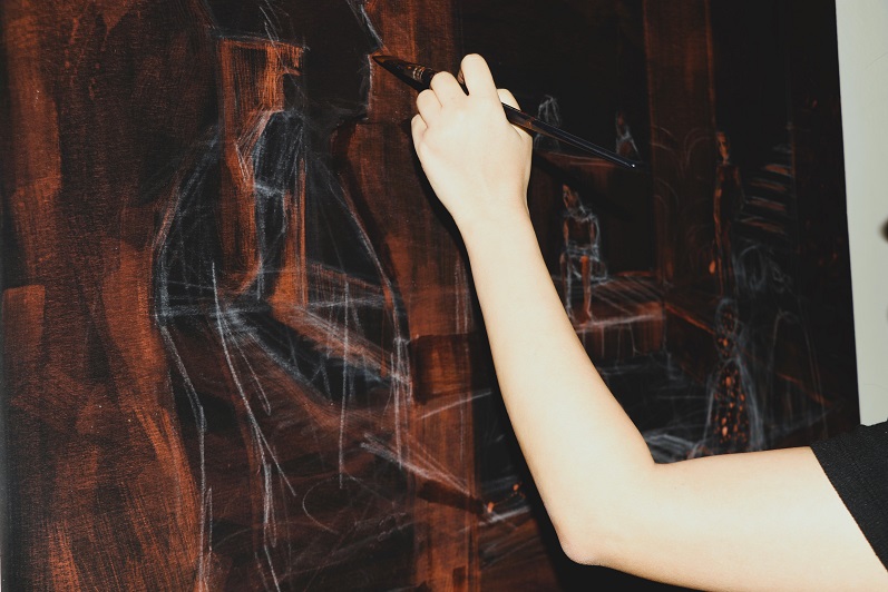 Çalışmalarında kullandığı asidi, kumaş üzerinde farklı yoğunluklarda kullanarak, renk geçişleri elde ettiğini ve kumaşın ağarması ile çalışmalarının ortaya çıktığını anlatan Unus, "Bu çalışmaya başlama sürecim aslında sevdiğim sulu boya tekniği ile başlıyor. Burada kumaşla yaptığım çalışmalarda sulu boya tekniğinin tam tersine koyudan açığa ulaşıyorum. Burada renk değerlerini elde etmemi sağlayan şey, asidin yoğunluğu oluyor. Çalışmalarımda ışığı elde etmek istediğim zaman, asidi ham haliyle kullanıyorum. Renk geçişlerini sağlamak istediğim zaman da seyreltiyorum. Bu da resimlerimde renk zenginliği sağlıyor. Aynı zamanda tekdüze çalışmalar olmaması için karışık teknik uygulamalar da yapıyorum, akrilikle renklendirme yaptığım çalışmalar da mevcut. Çalışmalarımda kullandığım asit, evlerimizde kullandığımız temizlik malzemelerinde bulunan ağartıcıların ham maddesidir. Çalışmalarımı, bunları seyrelterek elde ediyorum" dedi.