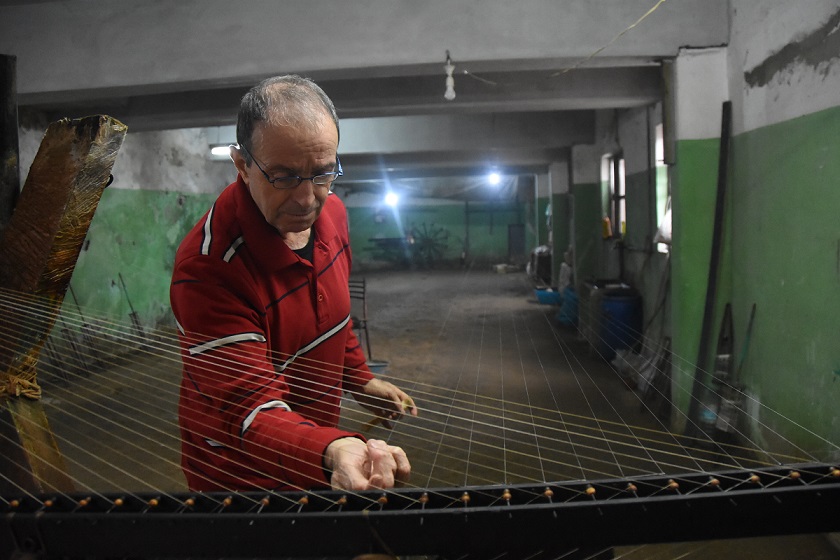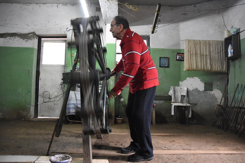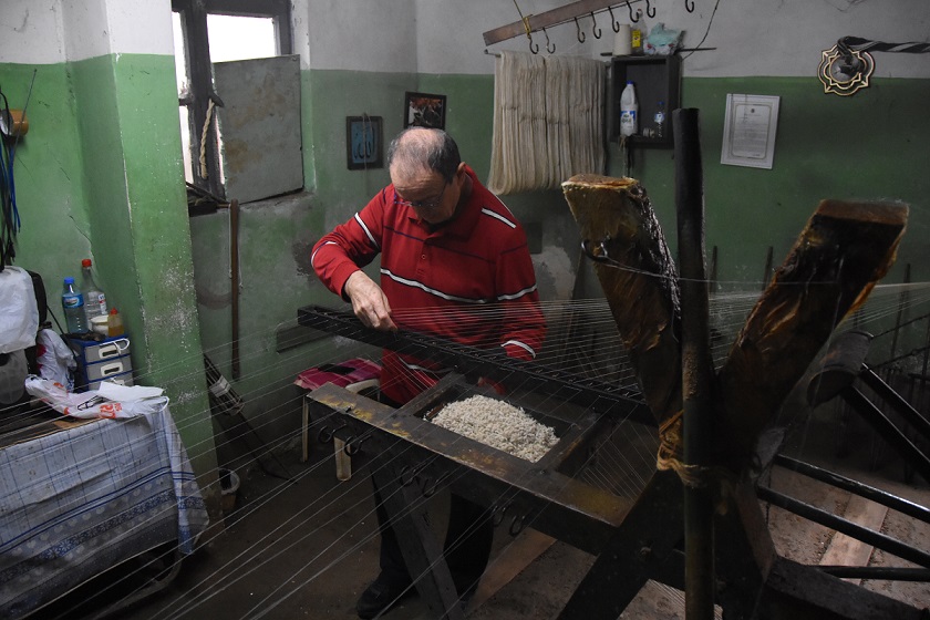 Geleneksel yöntemlerle iplik büken Şengünalp’in çalışma temposu, dikkat çekiyor. Ham ipeği temizlenmiş ve parlatılmış kuzu kemiğine bağlayan zanaatkar, ipliğin bükülmesi ve düzeltilmesi aşamasında tezgahın başında adeta mekik dokuyor. Günde ortalama 6 saat mesai harcayan Şengünalp, eski yöntemlerle ham ipekten ip hazırlamak için her gün yaklaşık 20 kilometre koşuyor.
