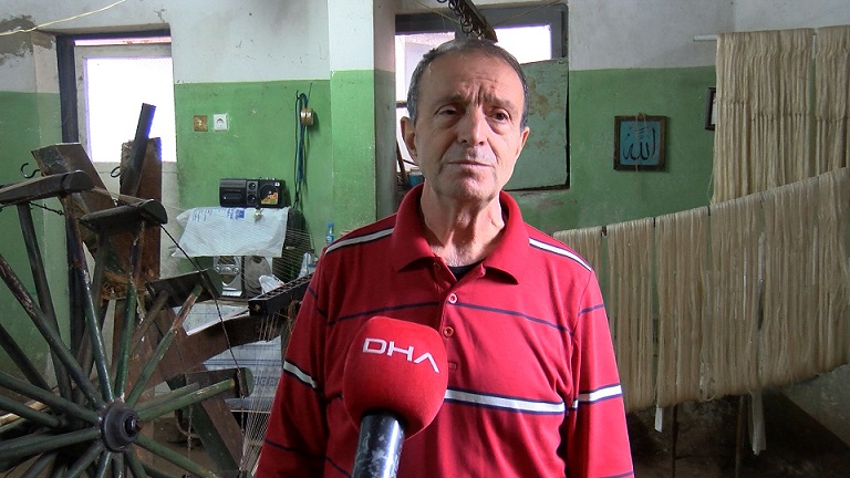 BURSA’da ‘İpek bürümcülüğü’ olarak bilinen 700 yıllık devdahlık mesleğini sürdüren Ertuğrul Şengünalp (60), eski yöntemlerle ham ipekten ip hazırlamak için, ipeği temizlenmiş parlatılmış kuzu kemiğine ve çarka bağlayarak hızla koşup, günde 20 kilometre mesafe katediyor.