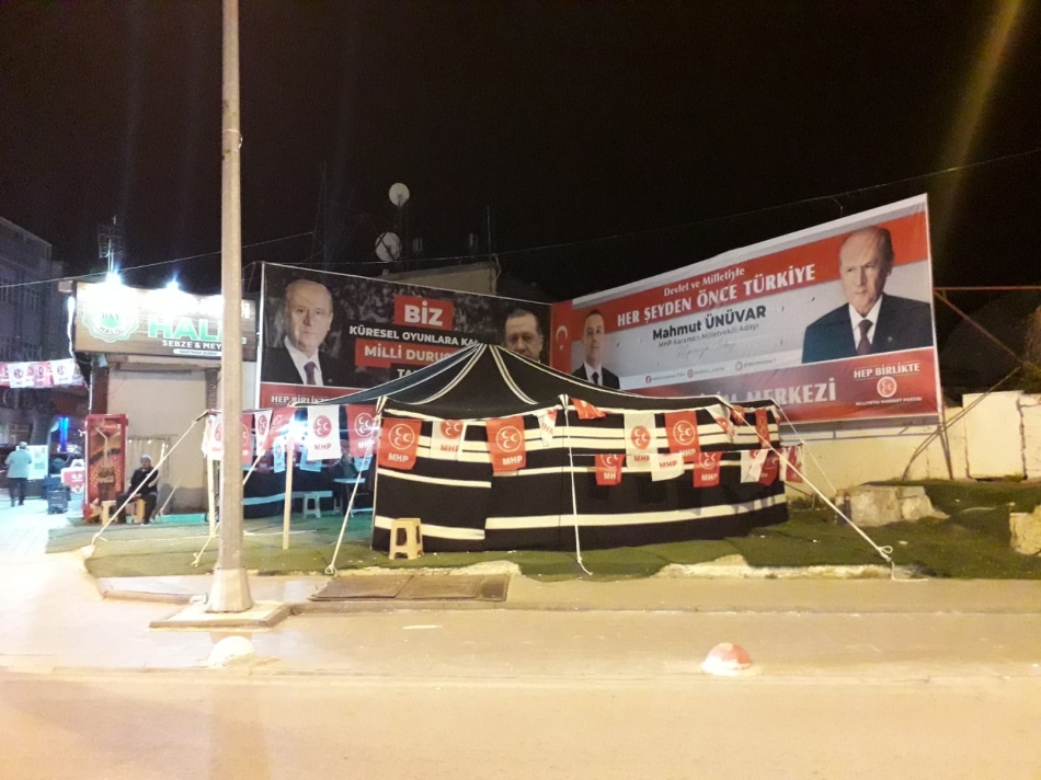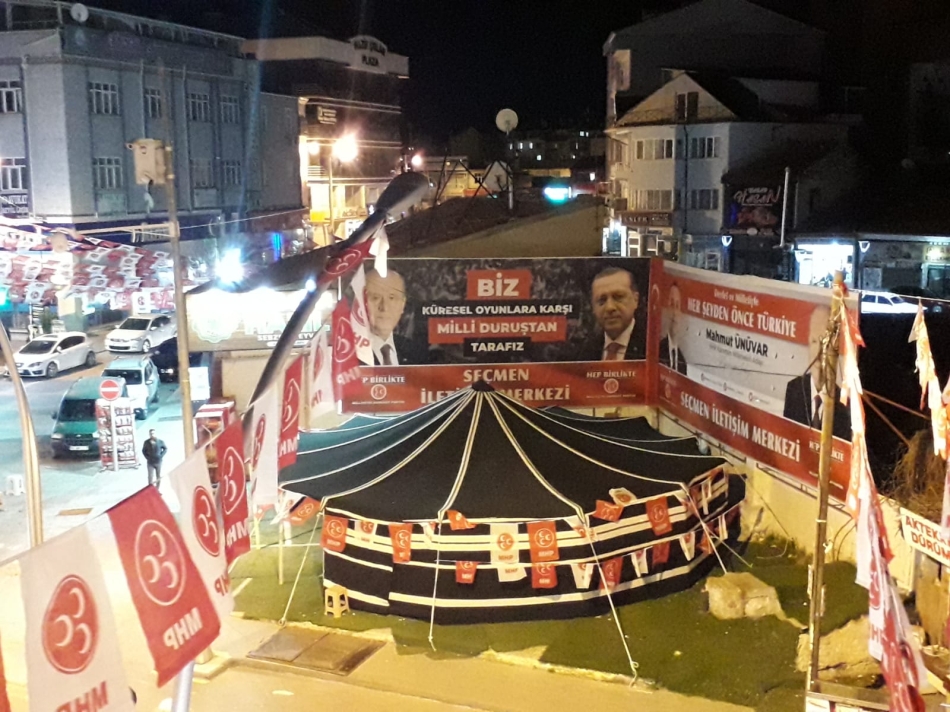 Karaman'da Milliyetçi Hareket Partisi Milletvekili adayı Mahmut Ünüvar kentin en işlek noktasındaki en görünür alana seçim iletişim merkezini kurdu.
