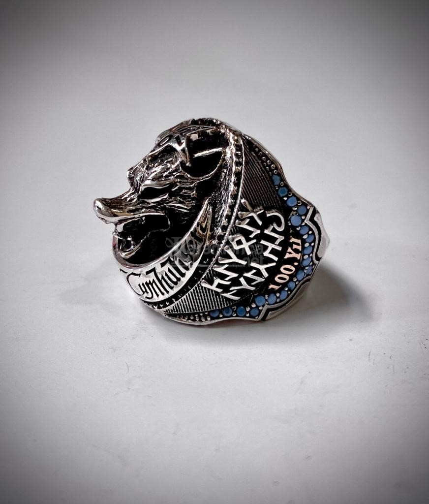 Kenarında Göktürk alfabesiyle Türk, diğer kenarında ise yine Göktürk alfabesi ile Devlet Bahçeli yazıyor. Devlet Bahçeli'ye yüzüğü teslim eden Küçükdemirel, Genel Başkan Bahçeli'nin, Cumhuriyet'in 100. yılında bu yüzüğü takmayı çok istediğini söylediğini kaydetti.
