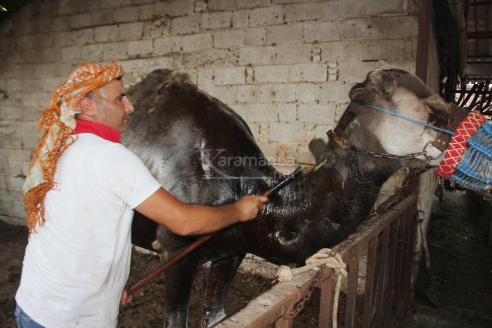 Çöl hayvanı olmalarına rağmen Aydın'da yaşayan develerin, nem ile birleşen sıcaklarda strese girdiğini belirten Akçay, "Aydın'da yüksek nem ve oldukça fazla olan haşere sıcaklarla birlikte hayvanları ciddi anlamda rahatsız ediyor. Sorunu çözmek için yıllardır yaz sezonunda develer önce sabunlu suyla yıkanır, ardan haşere kovucu özelliği de olan özel hazırlanmış katran yağı ile yağlanır.