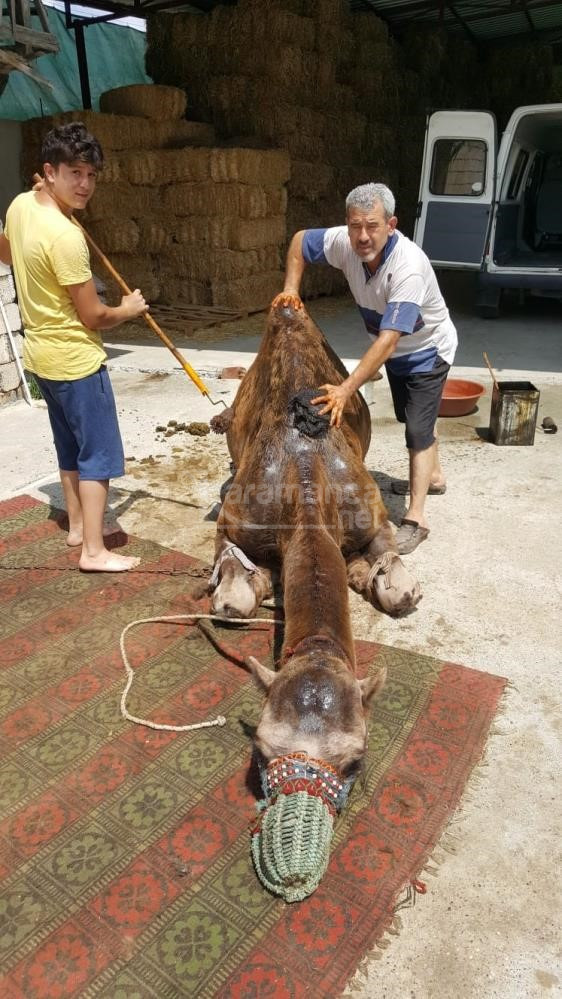 Bu şekilde yıkanıp yağlanan develere haşere de yaklaşmaz. Bu işlem genellikle Temmuz sıcaklarında yapılır. Ancak son yıllarda sıcaklar erken bastırdığı için haziran ayında da yağlama yıkama işlemi yapıyoruz" dedi.