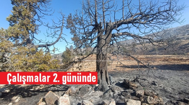 Karaman’ın Ayrancı ilçesine bağlı Küçükkoraş ve Divaz köyleri arasında yer alan Kızılyüksek-Berçin mevkisinde çıkan yangını söndürme çalışmaları ikinci gününde de devam ediyor.