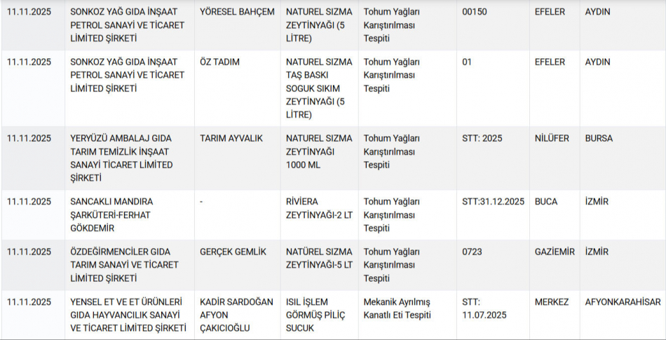 Bakanlığın ''guvenilirgida.tarimorman.gov.tr'' adresi üzerinden yayımladığı liste, ''Sağlığı Tehlikeye Düşürecek Gıdalar'' ve ''Taklit veya Tağşiş Yapılmış Ürünler'' başlıklarıyla iki ayrı kategoride açıklandı. 11 Kasım itibarıyla güncellenen veriler, gıda sektöründeki vahim tabloyu bir kez daha gözler önüne serdi.