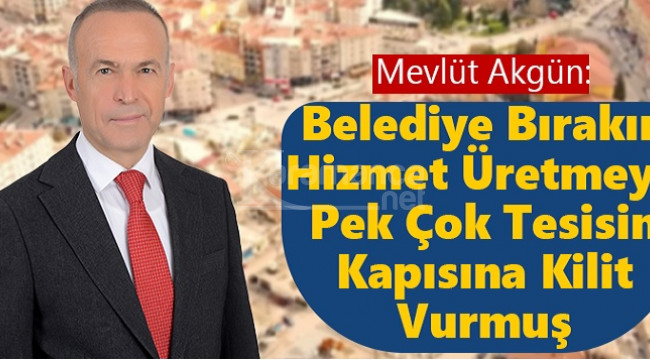 Av. Mevlüt Akgün yaptığı basın açıklamasında konu ile ilgili şu ifadelere yer verdi; “ Mevcut belediye başkanı ve belediye yönetimi neredeyse hiçbir icraat yapmadan, önemli sorunların çözümü için hiçbir proje üretmeden, bir kısım yol-kaldırım-park çalışması ile dönemini tamamlamıştır. Allah selamet versin. Fakat asıl dikkat çekilmesi gereken en önemli konulardan birisi önceki belediyeciliklerimiz döneminde vatandaşlarımızın hizmetine sunulan tesislerin kapısına kilit vurulmuş olmasıdır. Bir şeyi ortadan kaldırıyorsun madem, yerine daha iyisini koymak gerekmez mi?