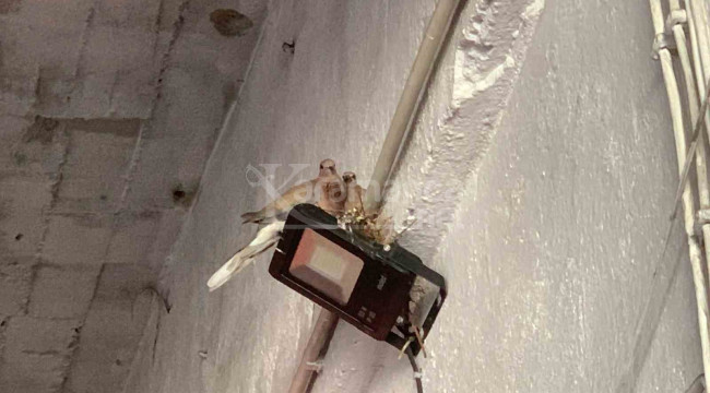 Karaman Orta Anadolu Küçük Sanayi Sitesi'nde bulunan bir oto tamirci dükkanının içerisine kırık camdan girerek lambanın üzerine yuva yapan kumru kuşu müşterilerin ilgisini çekiyor. İş yeri sahibi ve çalışanları da maskotları haline gelen kumru ve yavrularına gözü gibi bakıyor.