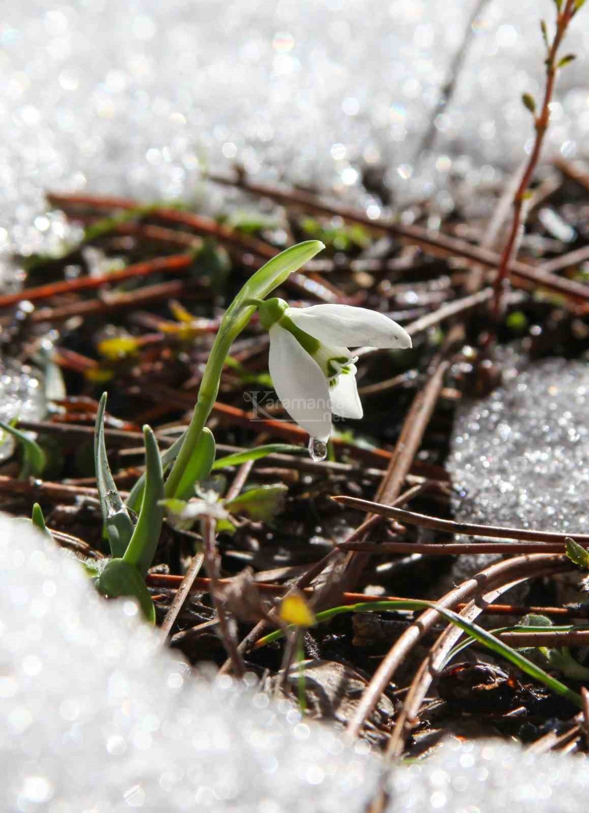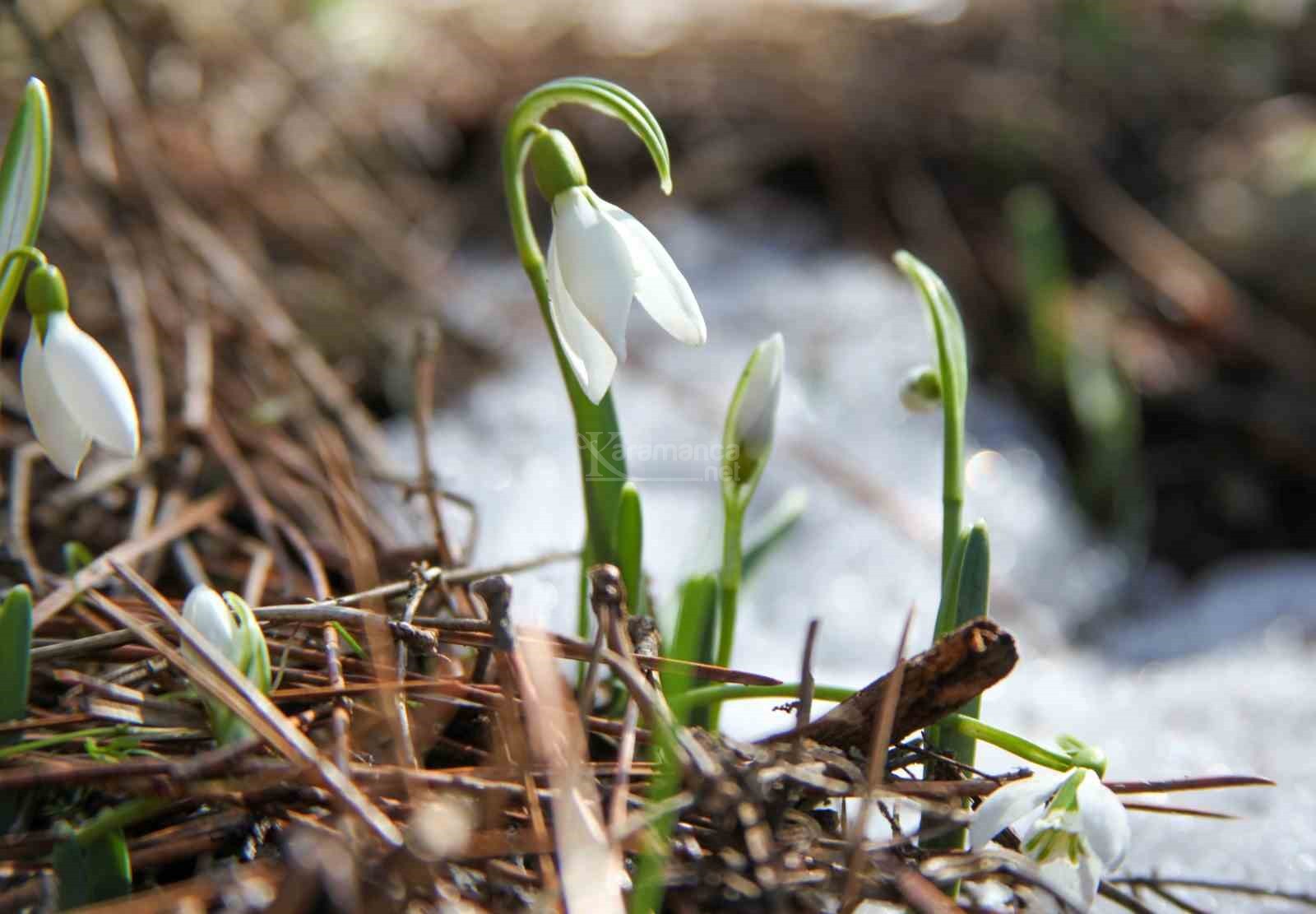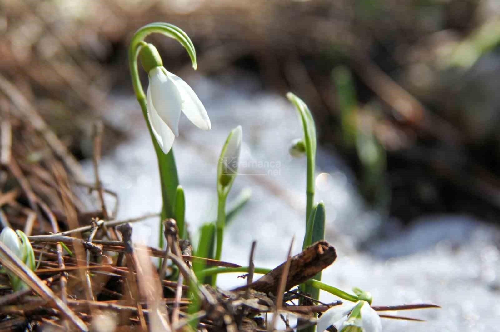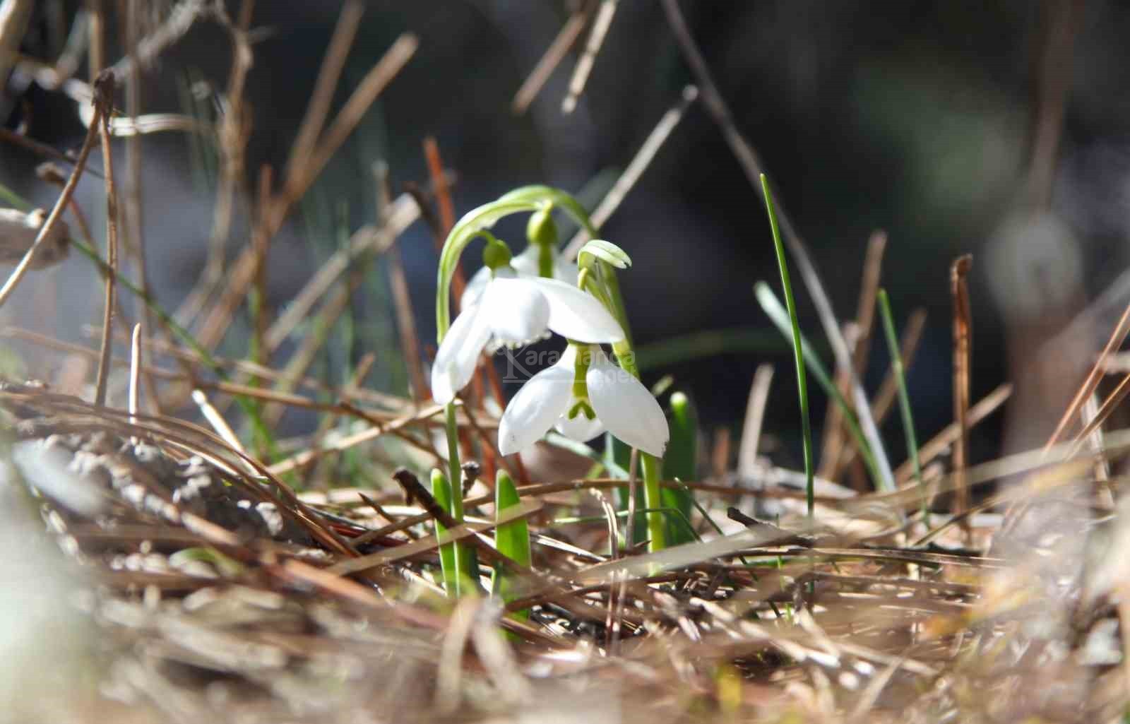 Manisa'nın Şehzadeler ilçesinde bin 517 rakımlı, 120 çeşidin üstünde endemik bitkiyi barındıran Spil Dağı Milli Parkı'nda havaların biraz yumuşaması ve ilk cemrenin düşmesiyle birlikte baharın müjdeleyicisi olan kardelenler, erimeye başlayan karların arasından çiçek açtı.