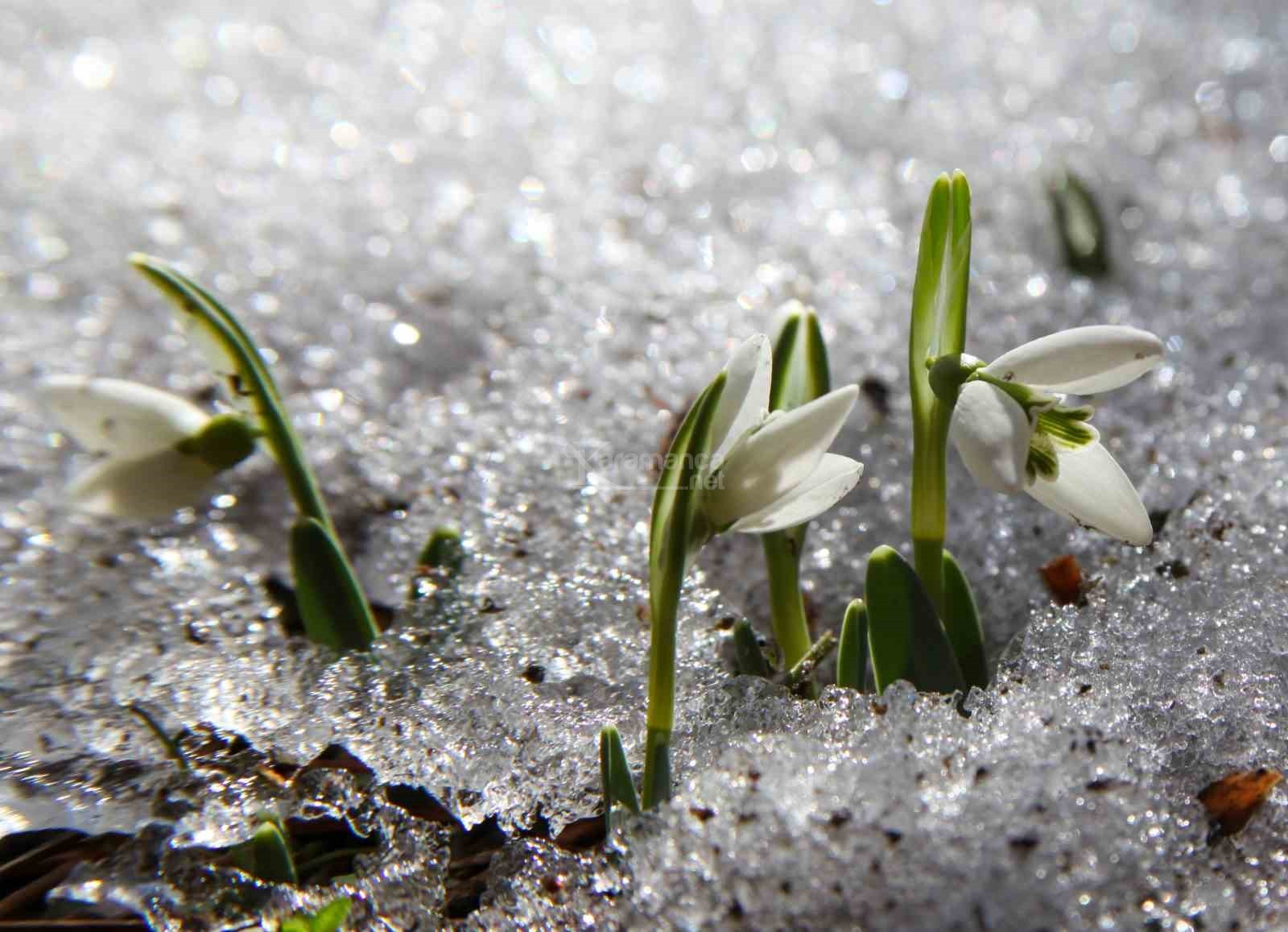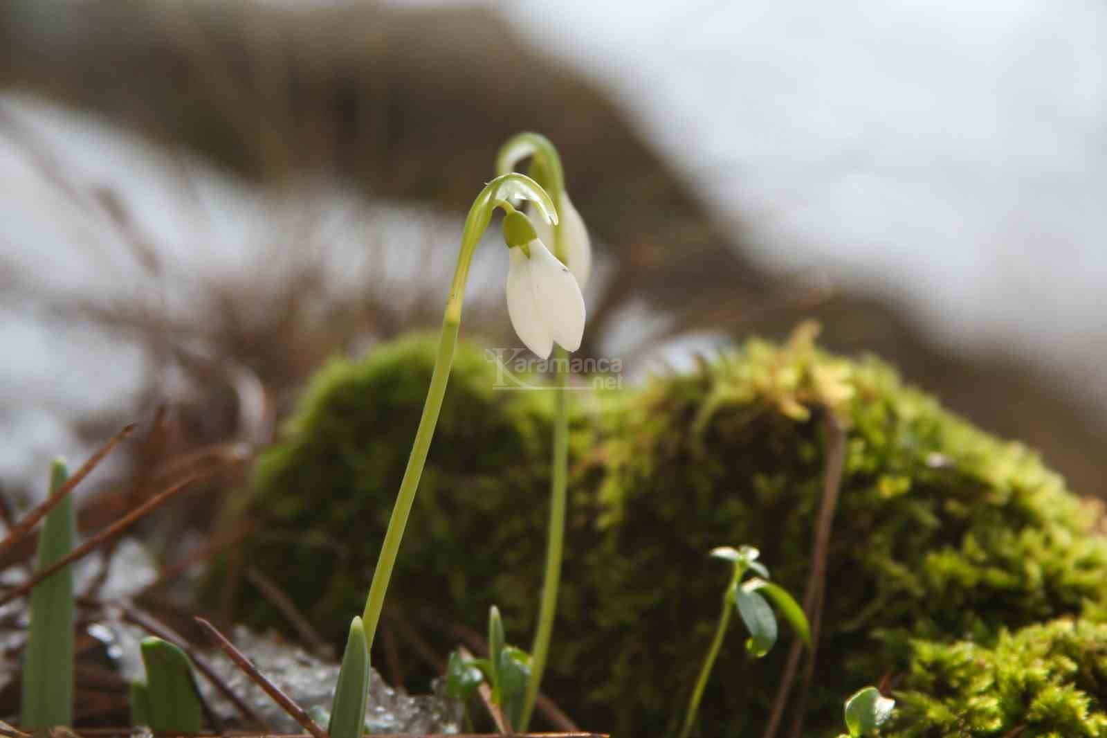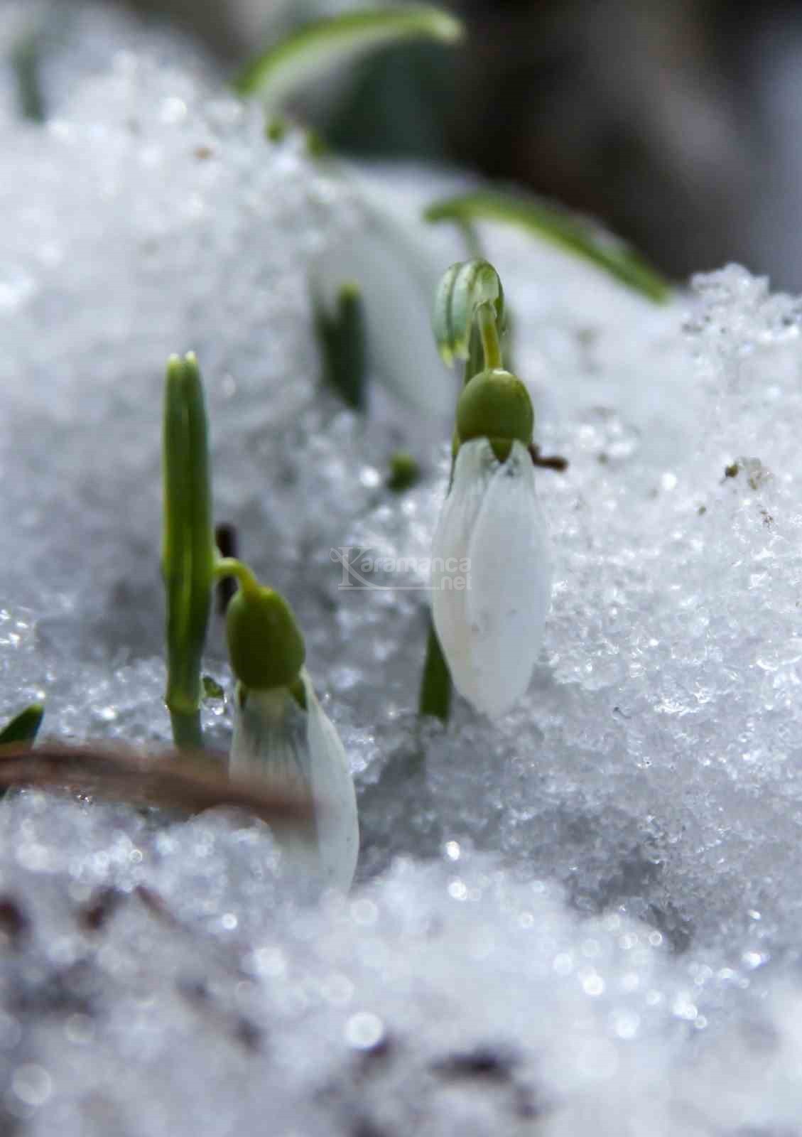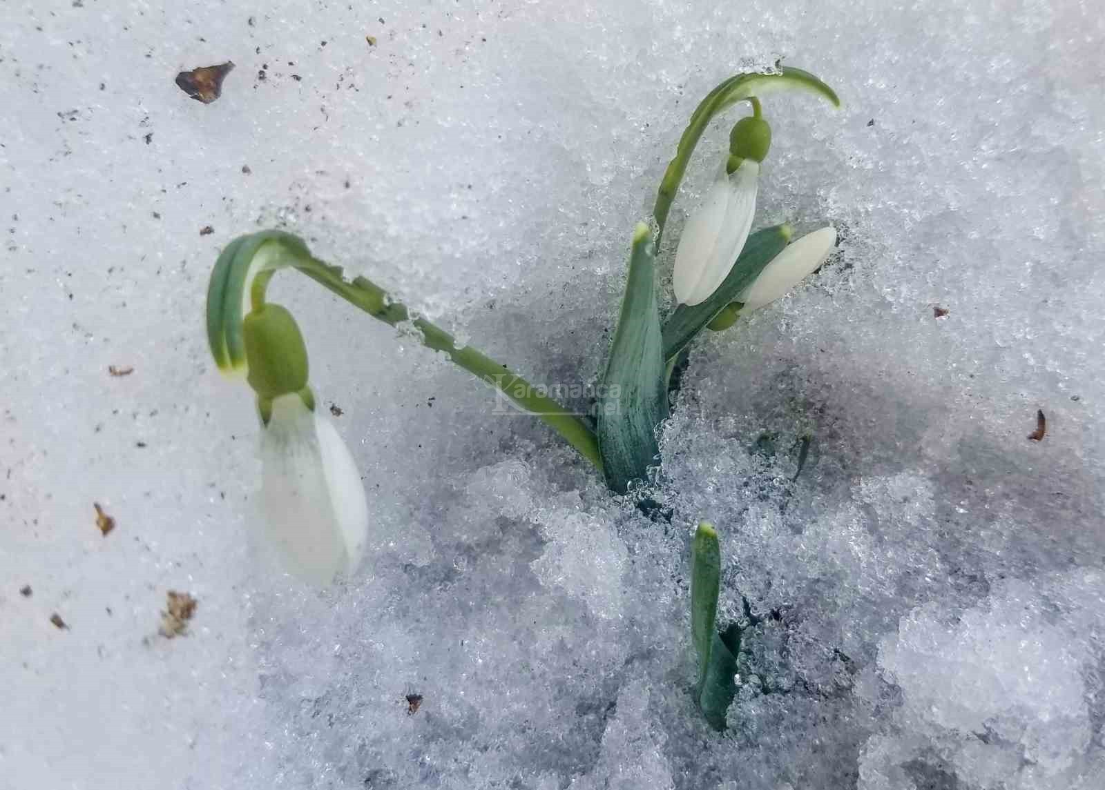 Manisa'nın Şehzadeler ilçesinde bin 517 rakımlı, 120 çeşidin üstünde endemik bitkiyi barındıran Spil Dağı Milli Parkı'nda havaların biraz yumuşaması ve ilk cemrenin düşmesiyle birlikte baharın müjdeleyicisi olan kardelenler, erimeye başlayan karların arasından çiçek açtı.