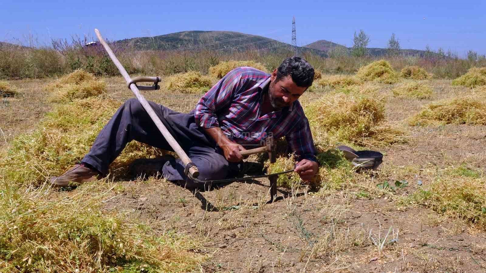 Yozgat'ın Yazıpınar köyünden Çalatlı köyüne yeşil mercimek hasadı için geldiğini söyleyen tırpan işçisi 56 yaşındaki Hıfzı Erdoğan ise çocukluktan beri tırpan ile hasat yaptığını ifade etti. Erdoğan, "Biz tırpan ile hasadı çocukluktan beri yapıyoruz. Tırpan ile hasat yapan çok fazla kimse kalmadı. Bu iş çok zor. Tırpanla hasat makineye göre biraz daha uygun. Makinede çalışan işçi çok oluyor, maliyeti de yüksek. Onun için tırpan ile hasadı tercih ediyorlar" şeklinde konuştu.