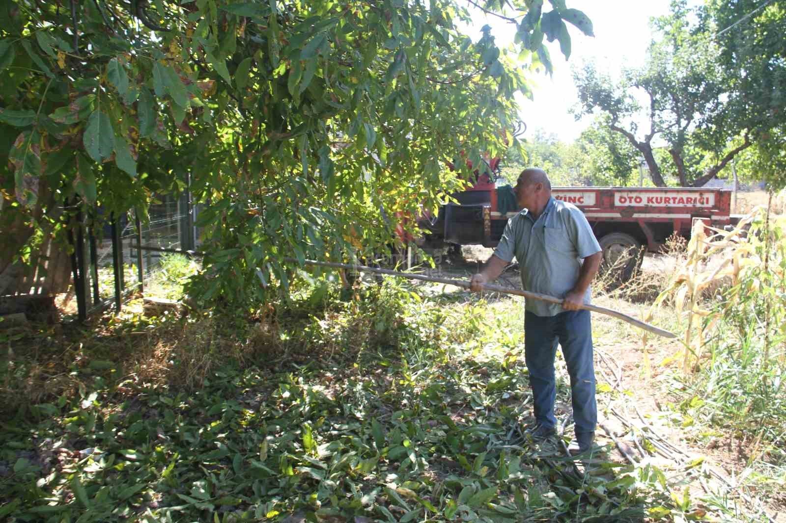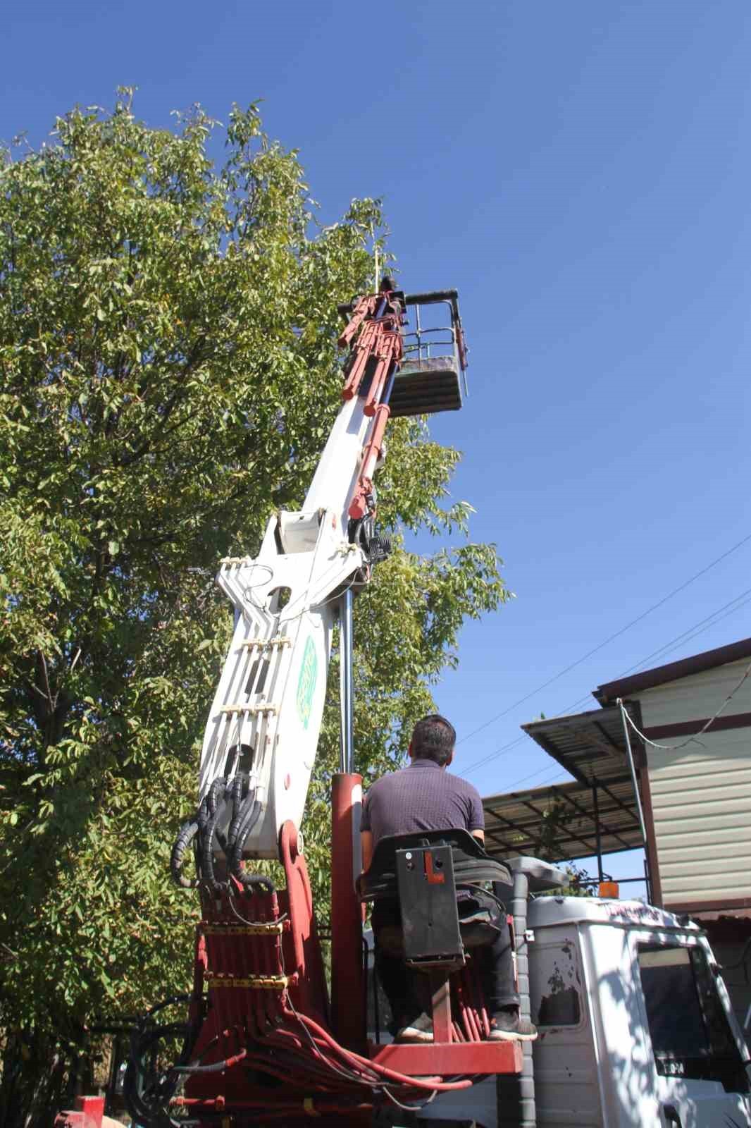 Bahçe sahibi oto kaporta ustası Musa Şahin, atadan kalma bahçelerinde ceviz ağaçlarının da olduğunu belirterek, çocukluk yıllarından beri bu ağaçlarda yetişen ürünü "ceviz çırpma" olarak da nitelendirilen işlem yoluyla, sırık denilen sopalarla ağaçların dallarına ya da yapraklarına vurarak yere düşürüp hasat ettiklerini söyledi. Şahin, son yıllarda ise bu iş için işyerindeki vinci kullanmaya başladıklarını anlattı. şyerinde vinç hizmeti vermelerinden dolayı ceviz hasadını 5-6 yıldır can güvenliğinin olması ve işlerini hızlandırıp kolaylaştırması nedeniyle vinç yardımıyla yapmaya başladıklarını aktaran Şahin, "Vincin sepeti yardımıyla artık ceviz toplama işini zahmetsizce yapıyoruz.