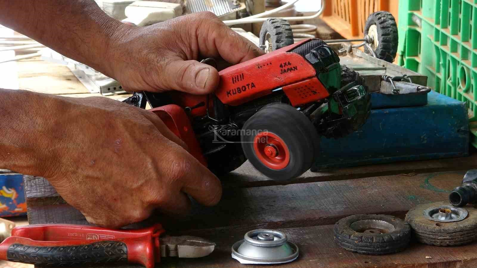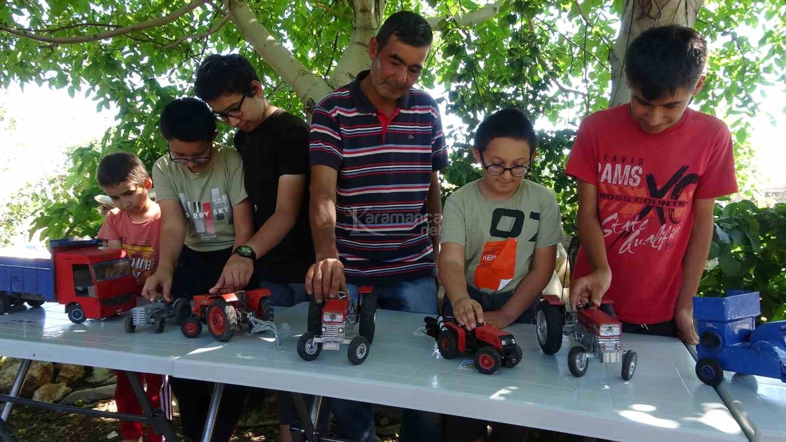 Oyuncaklara çocukluğundan bu yana büyük ilgi duyduğunu belirten Mustafa Ercan, "Çiftçilik yapıyorum. Boş zamanlarımda oyuncaklara, traktörlere karşı merakım var, bunlarla değerlendiriyorum. Onlarla uğraşmaktan zevk alıyorum, hoşuma gidiyor. Bugüne kadar yüzün üzerinde oyuncak yaptım. Bunları satmıyorum, yeğenlerime, kuzenlerime hediye yapıyorum, bayramlarda. Bunları hanımların kullanıp attığı eski tencere, tost makinelerinden yapıyorum. Alüminyum süt tencerelerini getirip bana veriyorlar. Tarımda giydiğimiz lastik ayakkabılar yırtıldığında bıçakla tek tek motifler veriyorum, teker yapıyorum. Sprey kutularından jant yapıyorum. İkisini birleştirince harika bir teker oluyor. Bunları çocuklara, gelecek nesillere öğretmek istiyorum" dedi.