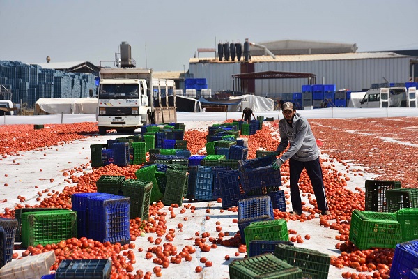 Domates üreticisi Kemal Saygıner ise "Hasadımızda 15 günü geride bıraktık. 15 gün boyunca her sabah 05.30'da güneşin doğuşuyla başlayıp, akşam güneşin batışıyla biten, uzun ve sıcak bir mesai devam ettiriyoruz. Şu an üretimimizin yarısına gelmiş olduk. Bugüne kadar 3 bin 500 ton yaş domates kestik, önümüzde bir o kadar daha miktarımız var.