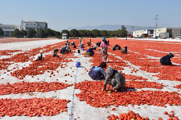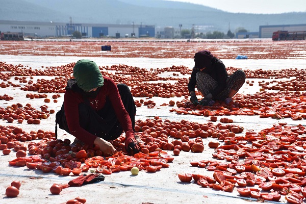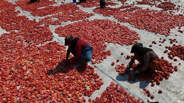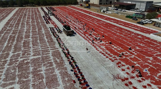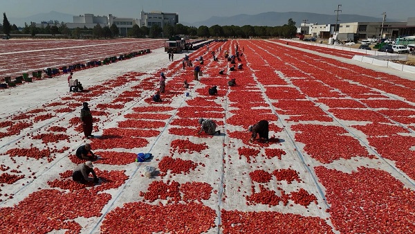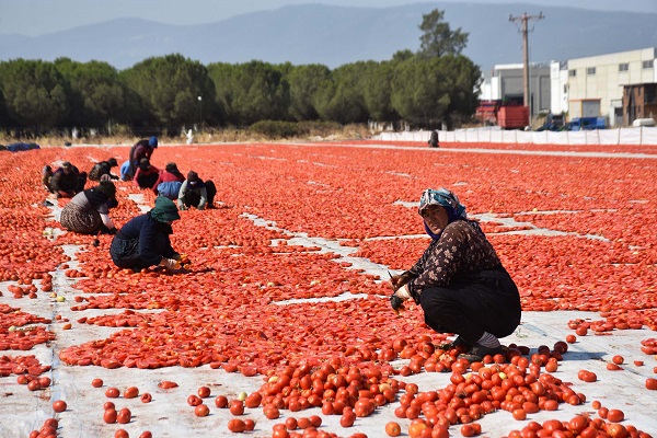 İzmir'in Torbalı ilçesinde kuru domates mesaisi devam ediyor. Temmuzda başlayan, ağustos ayının ortalarına kadar sürecek olan kuru domates mesaisi boyunca her sabah günün ilk ışıklarında toplanan domatesler kamyonlarla sergi alanlarına getirilip kurutulmaya bırakılıyor. Kurutulduktan sonra toplanıp soğuk hava depolarına taşınan domatesler, talebe göre ambalajlanıp yurt içi ve yurt dışı pazarlara sunuluyor.