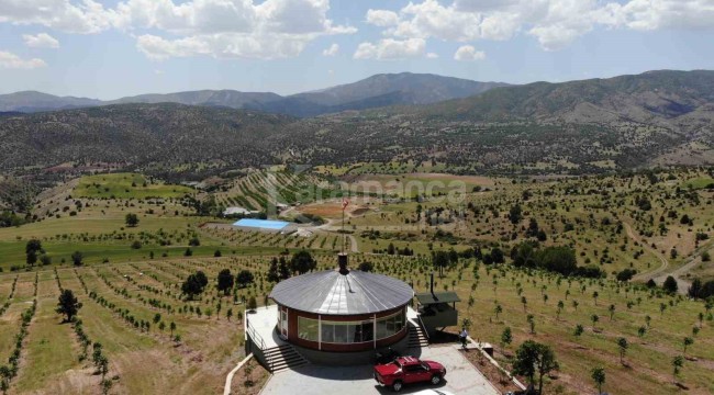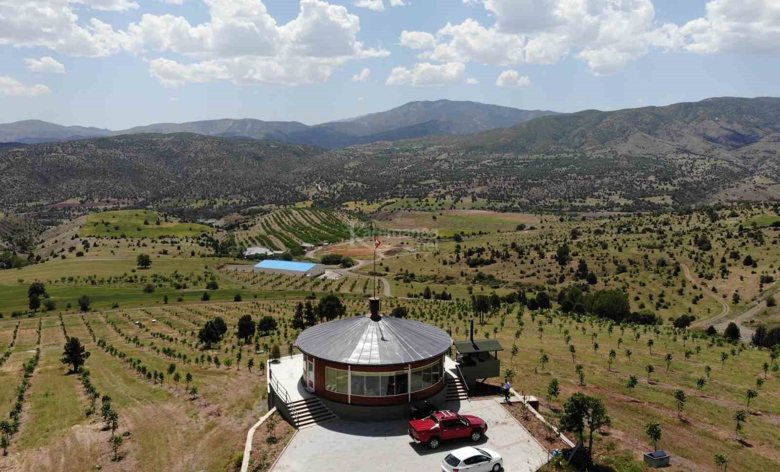Erzincan'da iş adamı Yavuz Peker, tüm araziyi gören tepenin üzerine yaptırdığı döner evde manzaranın keyfini çıkartıyor.