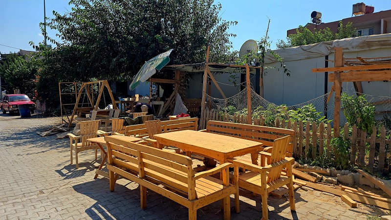 İlçede çocuk yaşlarda babasından devraldığı marangozluk mesleğini yarım asırdır sürdüren Necmeddin Kaptan'ın atölyesinin bulunduğu apartman, 6 Şubat depremlerinde yıkıldı. İş yerindeki tüm makineleri enkaz altında kalarak kullanılamaz hale gelen Kaptan, bir konteynerde mesleğini sürdürmeye karar verdi. İş makineleri olmadığı için ilkel el gereçleriyle masa, sandalye, dolap, bahçe takımı gibi ürünler üretmeye devam eden Kaptan, sıfırdan yeni bir atölye kurdu.