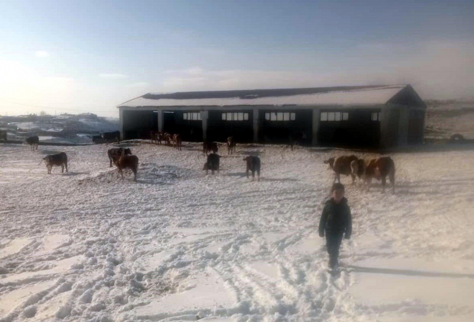 Yarı açık ahırda hayvanların eksi 30 dereceye bile dayandığını aktaran Yücel Ulu, "Hayvanlarımız eksi 30 dereceye kadar burada kaldı. 8 senedir hiçbir gün içeride kalmadılar. 2 yıl önce kar çok yağmıştı, bir ara tipiden yol kapandı. Çok uğraştık yolu açamadık. Hayvanlar kendileri yolu bulup geldiler. Yemlerini düzenli verdiğimizden bağışıklık sistemleri güçlü oluyor ve aşırı soğuklara bile dayanabiliyorlar. Çok da uysal hayvanlar.