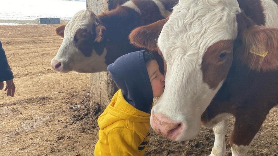 Torunlarına da yarı açık ahıra götürerek hayvancılığı öğrettiğini söyleyen Ulu, "Çocuklarımız buraya her zaman geliyorlar, burada oynuyorlar, kendilerince yardım ediyorlar ve gördükleriyle, duyduklarıyla hayvancılığa aşina oluyorlar. İnekler doğum yaptıklarında seviniyorlar. Buzağılara isim veriyorlar, süt veriyorlar. Yani çok seviniyorlar.