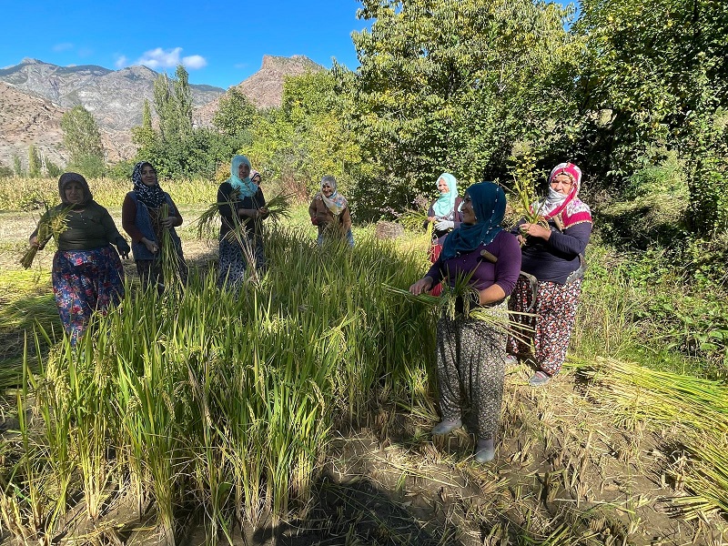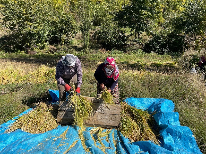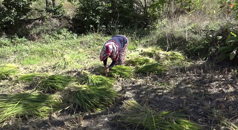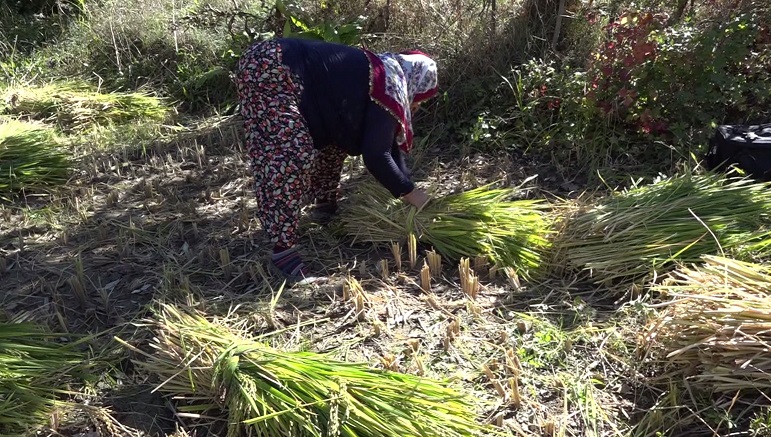 ARTVİN'in Yusufeli ilçesindeki çeltik tarlalarında geleneksel yöntemlerle hasat sürüyor.