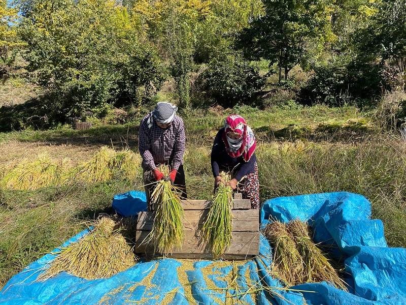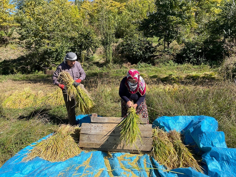 Yöre halkından Fatma Kaya, çeltik hasadının zahmetli bir iş olduğunu kaydederek, “Pirinç biçiyoruz. Zorlu ve zahmetli bir iş. Görünüşü ve yemesi güzel ama çok zahmetli bir iş. Organik pirinçtir” dedi.