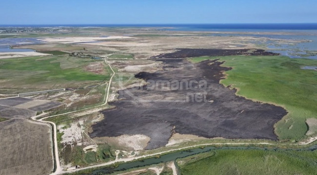 Göksu Deltası'nda yangında zarar gören alan havadan görüntülendi