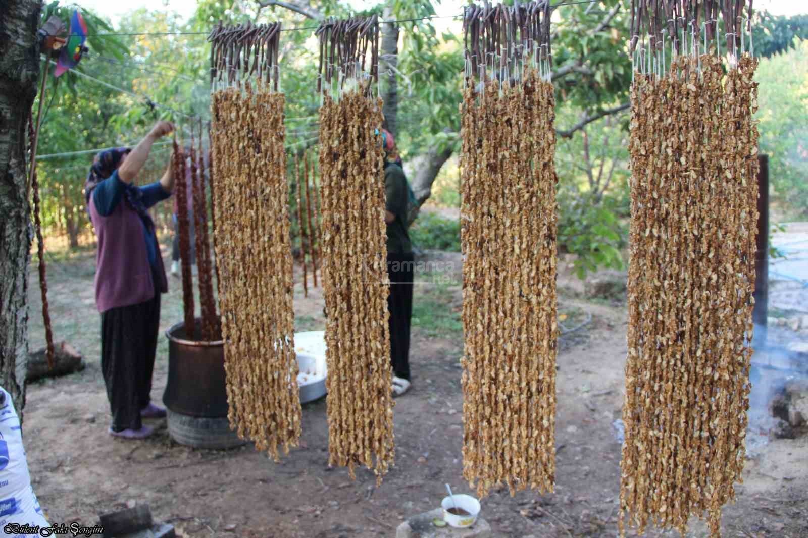 Konya'nın Halkapınar ilçesinde yöresel yiyeceklerin başında gelen cevizli bandırma yapımları başladı.