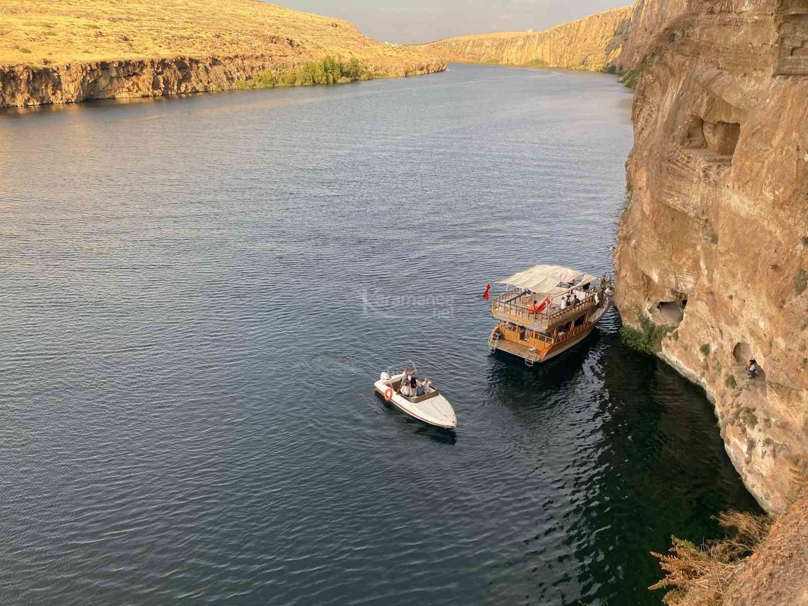 Her iki tarafında tarihi 2 bin yılla dayanan mağaraların bulunduğu Kızılin Kanyonu'nda turizmin geliştirilmesine önemli katkı sağlayacak olan iskele suya indirildi, tekne turları başladı.
