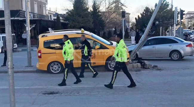 Kontrolden çıkan taksi aydınlatma direğine çarptı. İhbar üzerine kaza yerine polis ve sağlık ekibi sevk edildi.