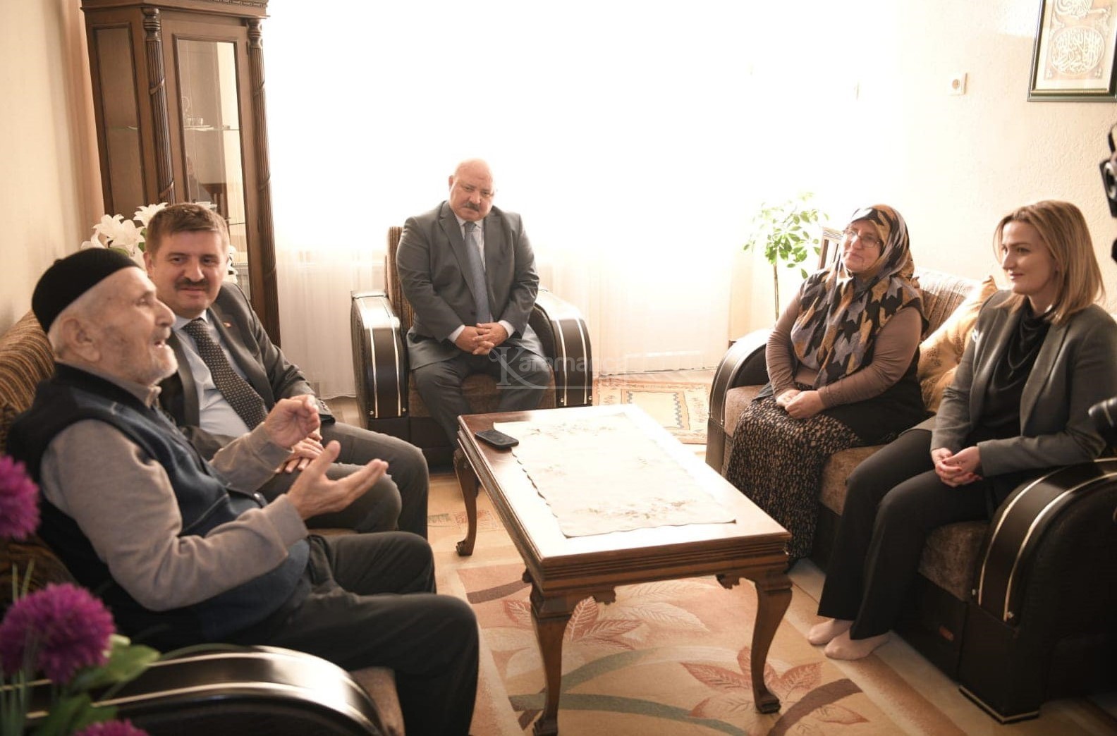 Vali Sarıibrahim ve eşi Hatice Sarıibrahim, daha sonra 101 yaşındaki Ahmet Yanık'ı Kirişçi Mahallesi'ndeki evinde ziyaret etti. Sık sık Vali Sarıibrahim'in elini tutarak yüzünü okşayan Ahmet Yanık'ın mutluluğu yüzüne yansıdı. "Allah'ım devletimize zeval vermesin" diyen Ahmet Yanık, "Ben askerden geldiğimde ayağımda giyecek ayakkabım yoktu. Para yoktu, imkan yoktu. Şimdi her şeyimiz var, Türkiye benim" dedi.
