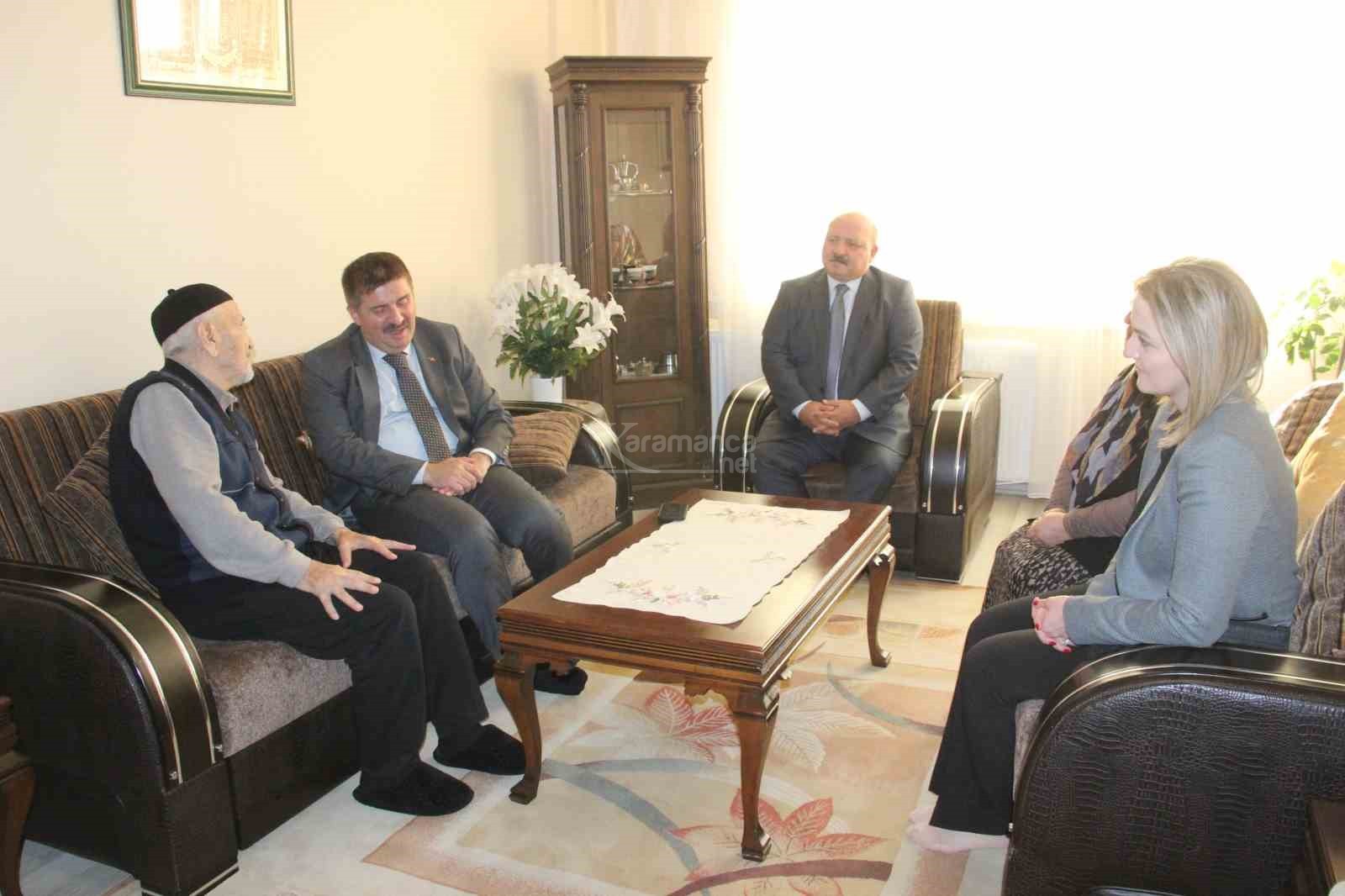Karaman Valisi Hüseyin Engin Sarıibrahim, eşi Hatice Sarıibrahim ile birlikte, Cumhuriyet'in asırlık çınarları 103 yaşındaki Emine Kocaoğlu ve 101 yaşındaki Ahmet Yanık'ı evlerinde ziyaret etti.