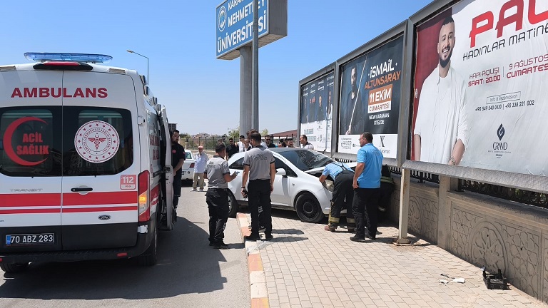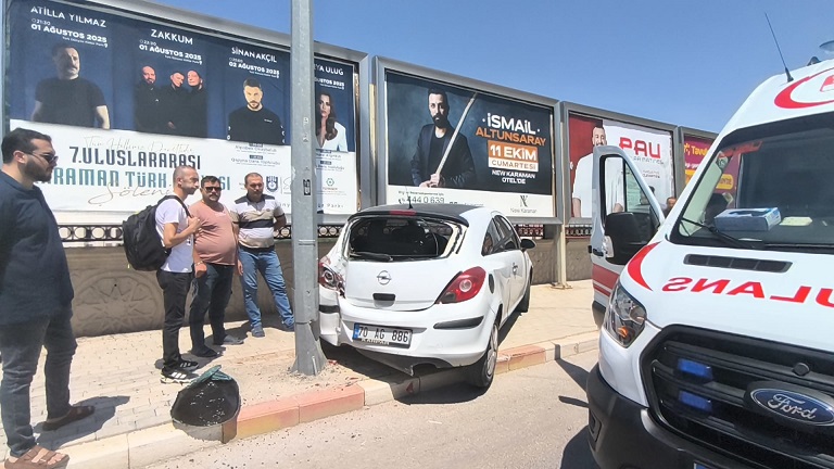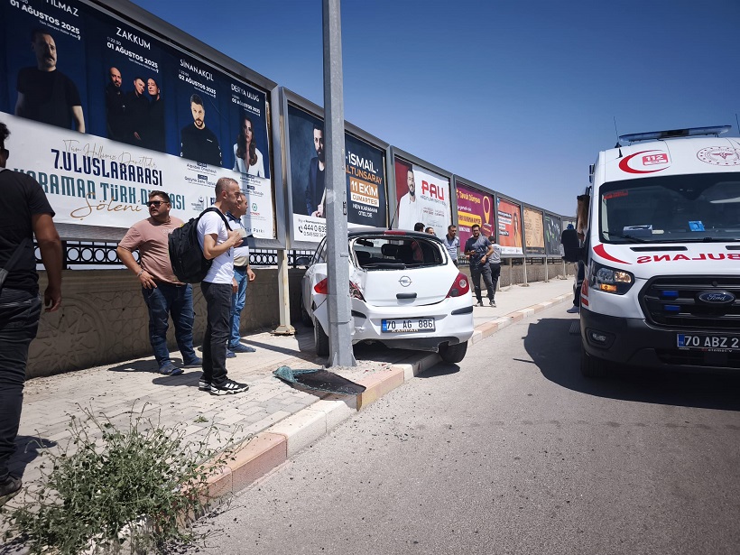 Edinilen bilgiye göre, 70 AG 886 plakalı otomobil kavşağa girdiği sırada kontrolden çıkarak savruldu.