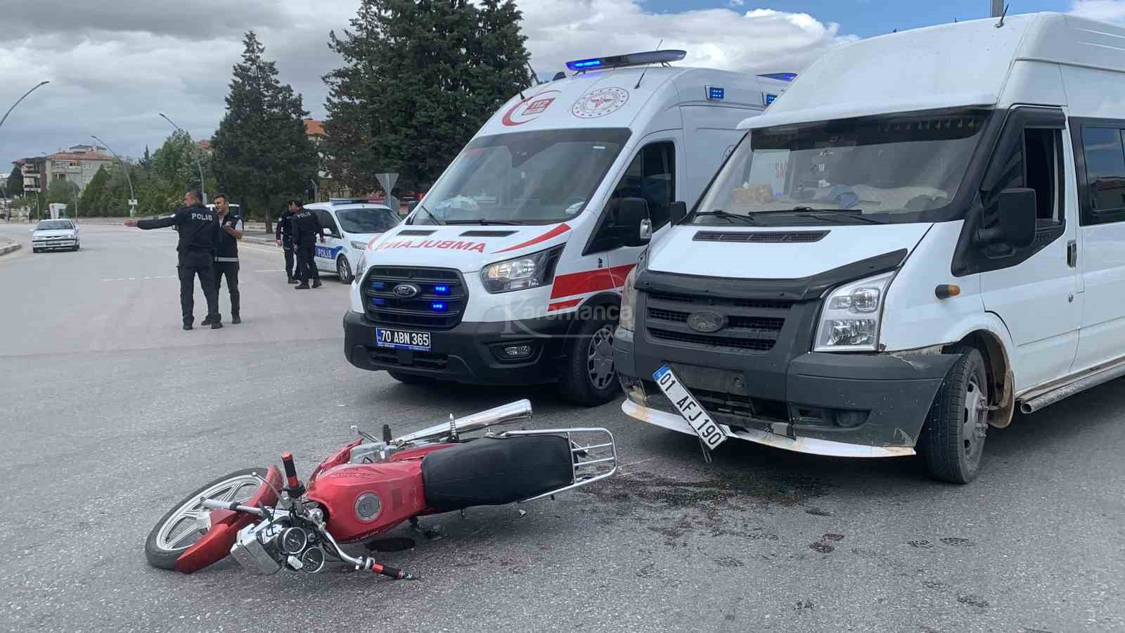 Karaman'da minibüs motosiklete arkadan çarptı: 1 yaralı