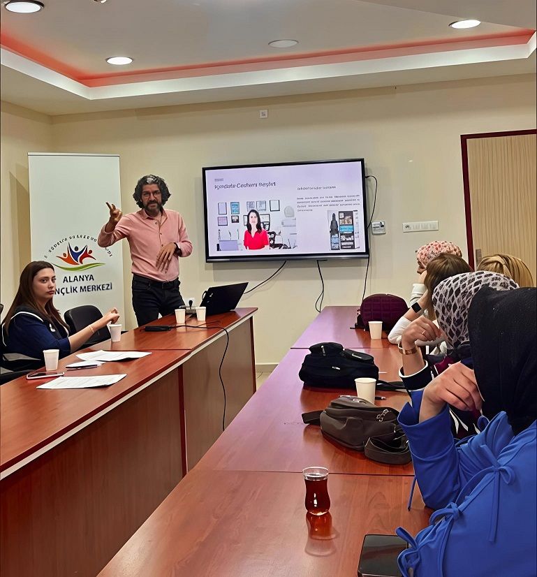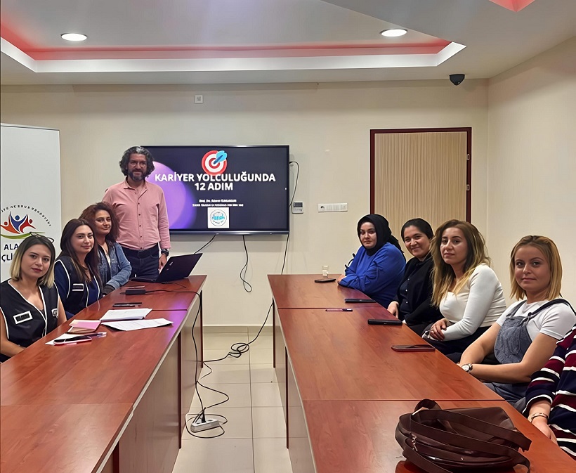 Proje kapsamında kişisel gelişim farkındalığı ve kariyer planlamaları temalı eğitim, Alanya Gençlik Merkezi’nde ALKÜ Üretim Yönetimi ve Pazarlama Ana Bilim Dalı Öğretim Üyesi Doç. Dr. Davut Karaman tarafından verildi. Eğitimde 12 maddede hedefe giden yolda atılması gereken adımları güncel trendlerle ele alan Karaman, önce istihdam sonra girişimcilik vizyonu ile vagon yerine lokomotif olmanın ülke ekonomisi açısından önemini vurguladı. Özellikle kadın girişimcilerden örneklerle gerçek hayatta karşılaşılan zorlukların üstesinden nasıl geldikleri, günlük hayatta yaşanan sorunların nasıl girişimci fırsatlara dönüştürüldüğü aktarıldı.