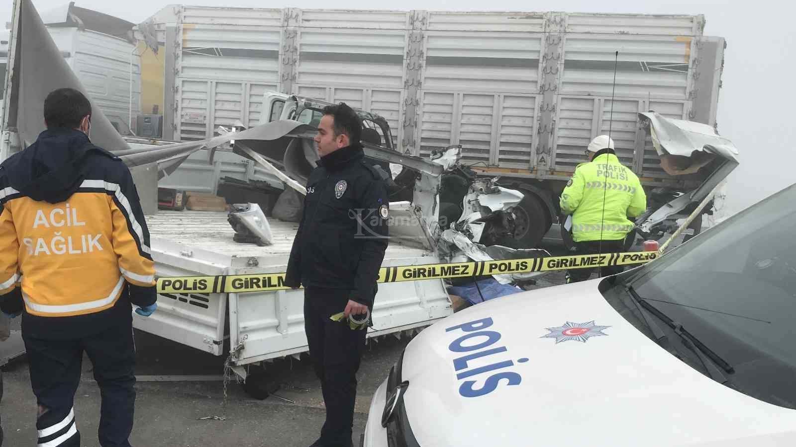 Edinilen bilgiye göre, Karapınar'dan Konya şehir merkezi istikametine seyir halinde olan askeri kamyonet, aynı istikamette seyir halinde olan ve sis nedeniyle başka bir kazadan dolayı yavaşlayan 42 ABV 596 plakalı tırın dorsesine arkadan çarptı.