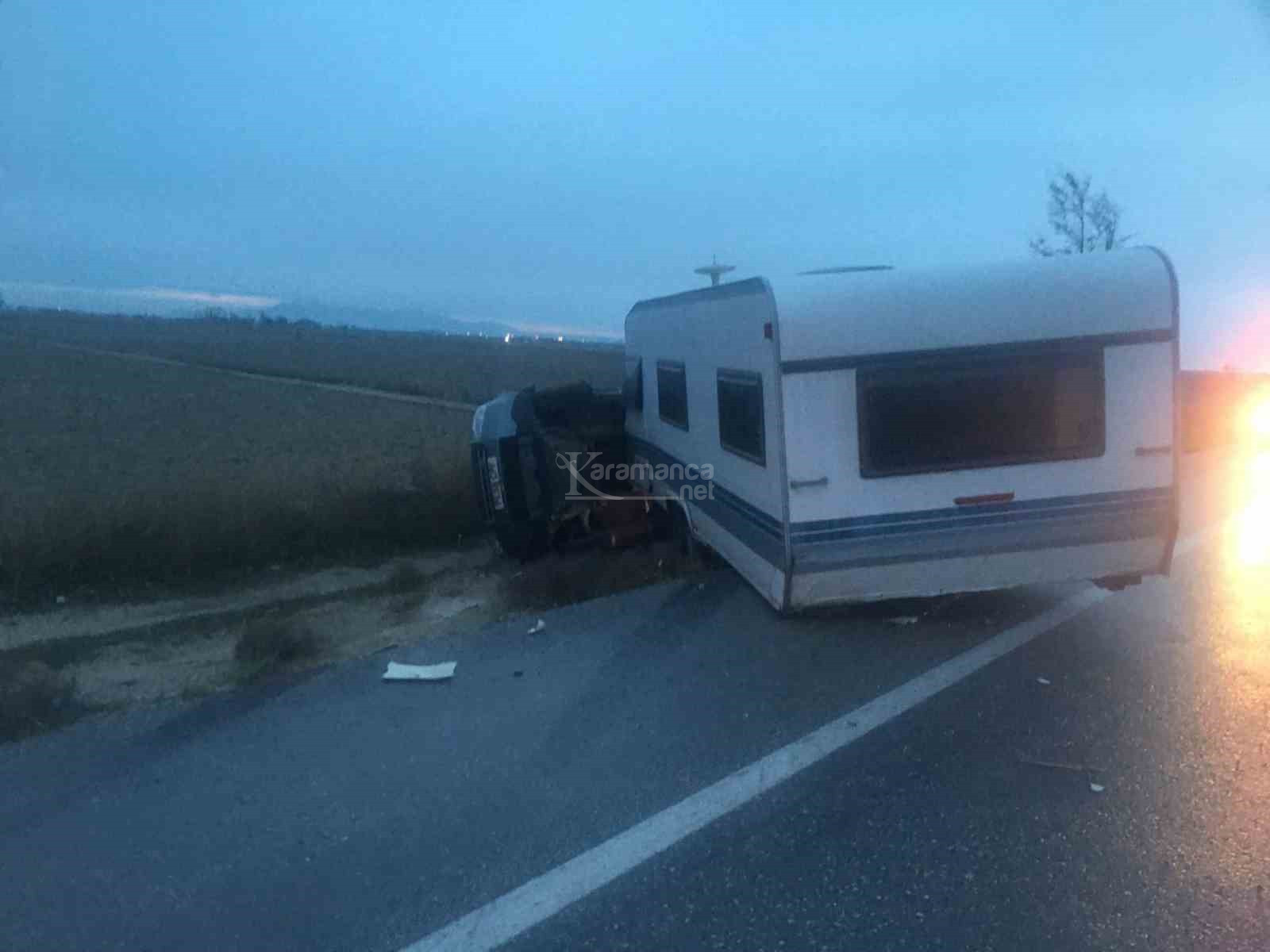 Karapınar ilçesinde arkasında karavan bağlı bulunan otomobil kontrolden çıkarak karşı şeride geçtikten sonra şarampole devrildi. Kazada araç sürücüsü yaralandı.