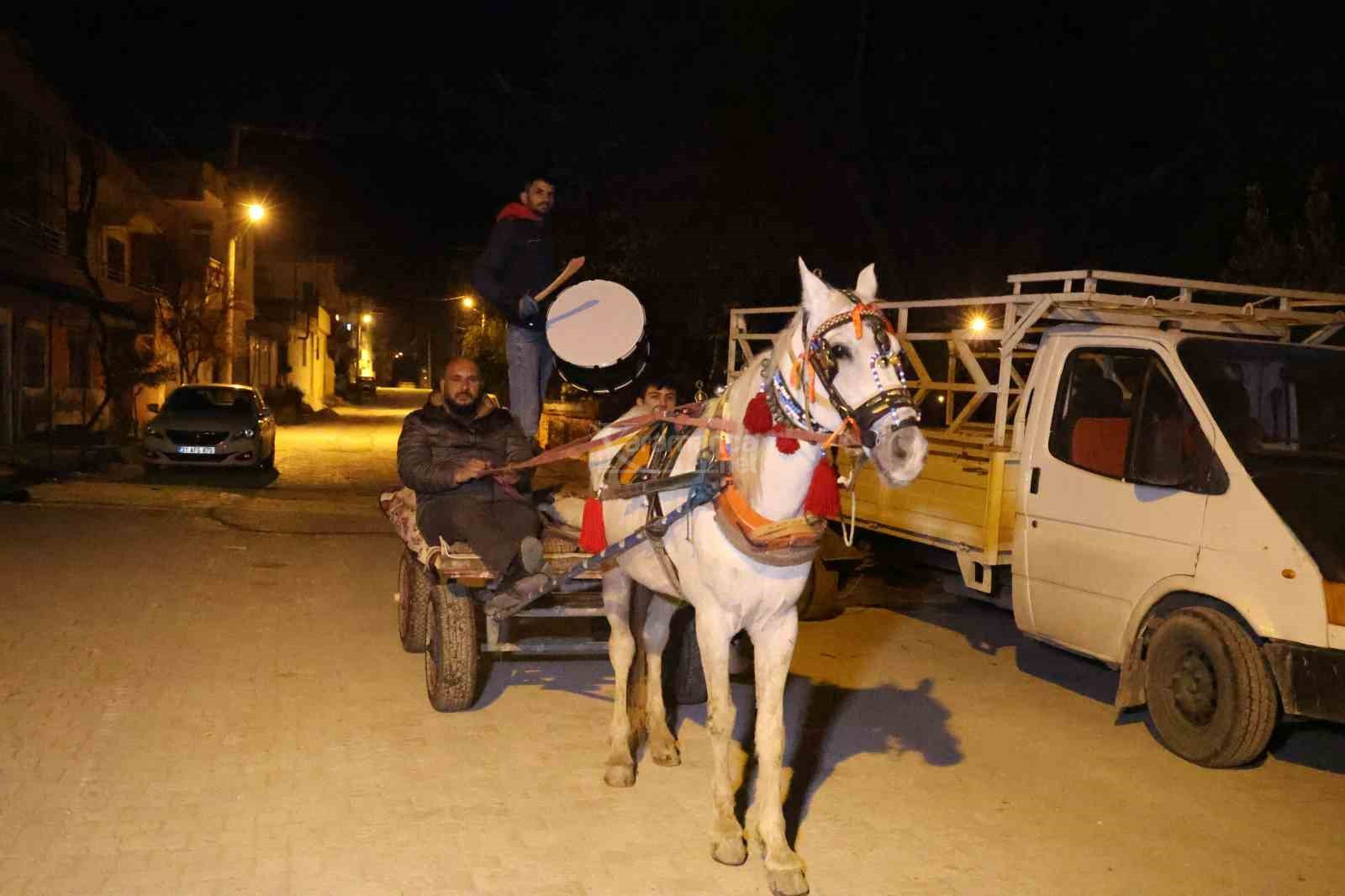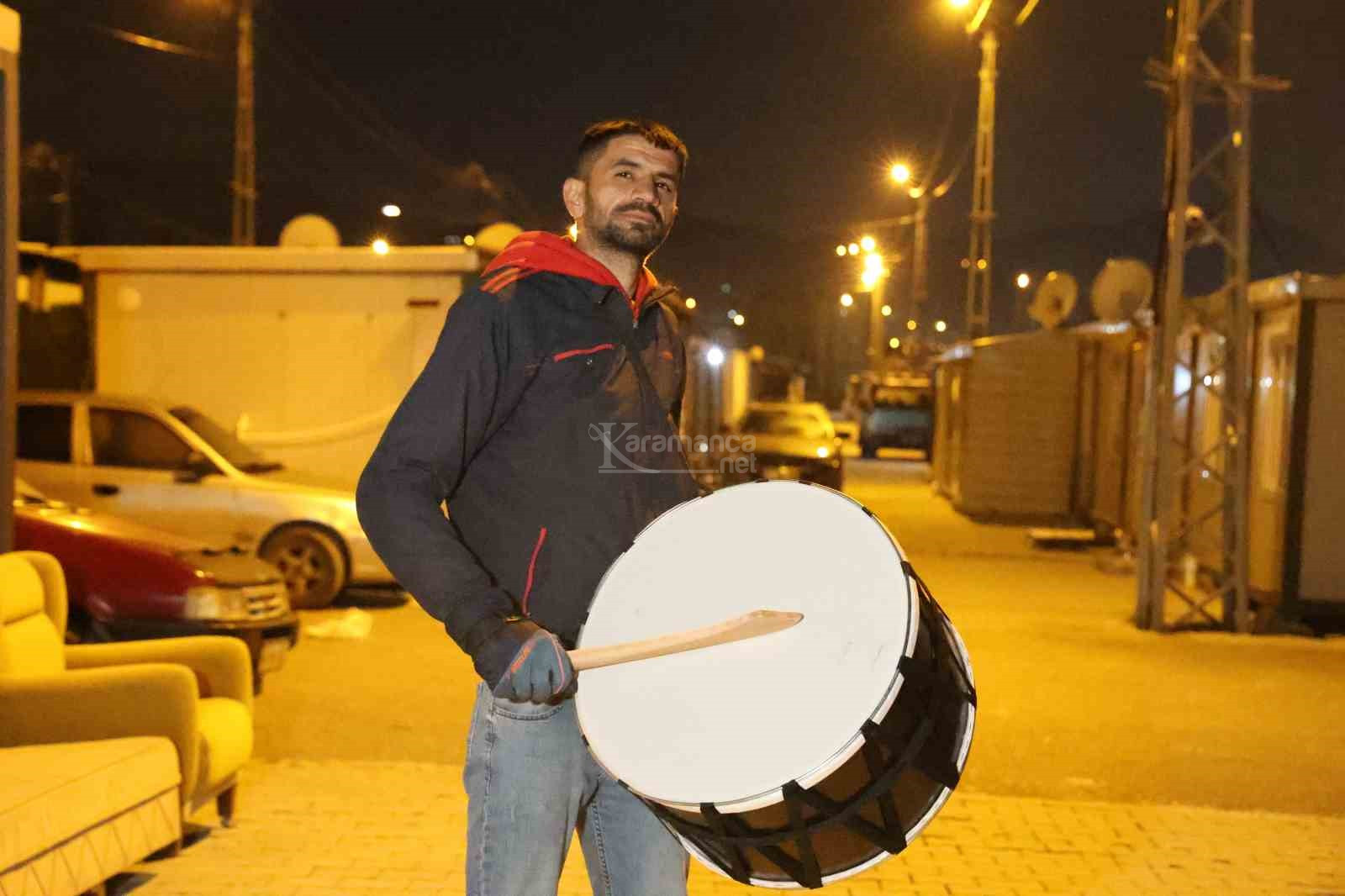 Kahramanmaraş merkezli depremlerde en çok yıkıma uğrayan Hatay'da vatandaşlar, geçtiğimiz yıllarda yaşadıkları Ramazan aylarını özlüyorlar. Ramazan ayını buruk bir şekilde karşılayan kentte, Ramazan davulculuğu geleneği enkaza dönen sokaklarda yaşatılmaya devam ediyor. Bu geleneği devam ettiren 36 yaşındaki Sabit Erdoğan, Antakya ilçesi Narlıca Mahallesi'nde at arabası üzerinde davul çalarak vatandaşları sahura kaldırıyor. At arabası üzerinde davul çalarak, maniler söyleyen Erdoğan, at arabasının geçemeyeceği konteyner kentlerde vatandaşları yürüyerek elinde davuluyla uyandırıyor.