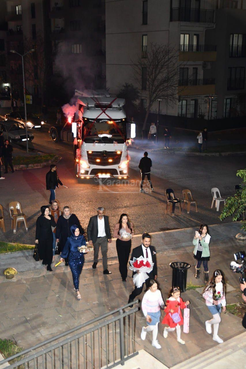 Hatay'da yaşayan tır şoförü Beyazıt Yarar, kız istemeye gelin arabası gibi süslediği tırıyla gitti.