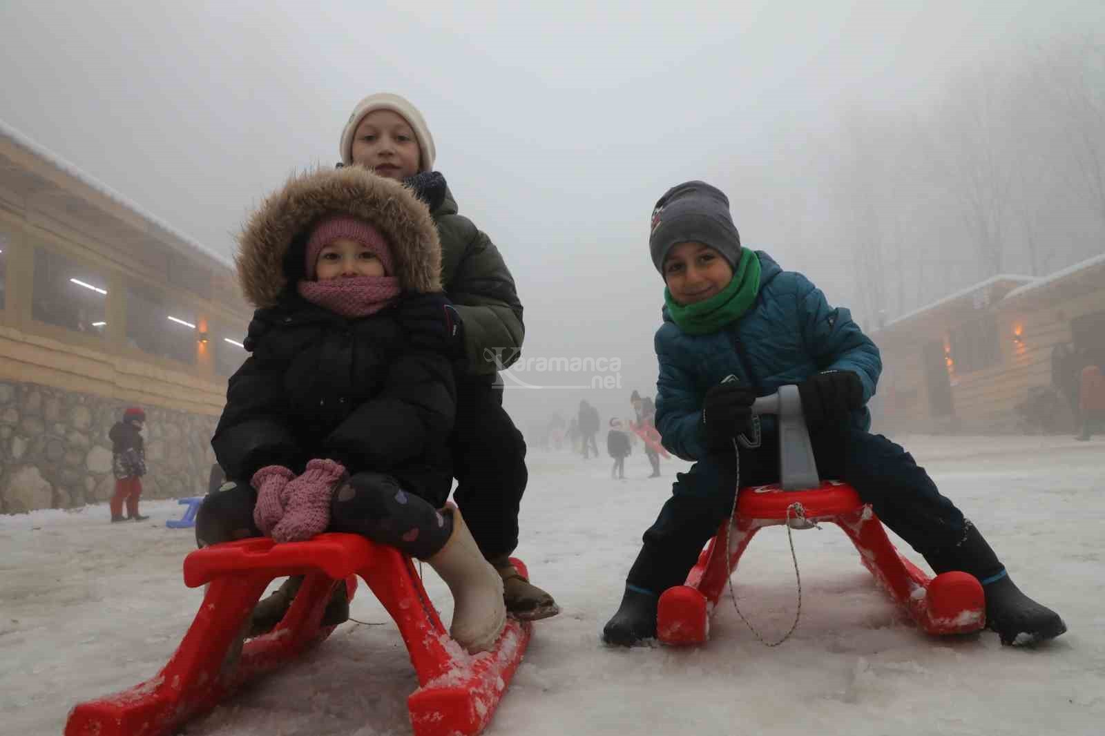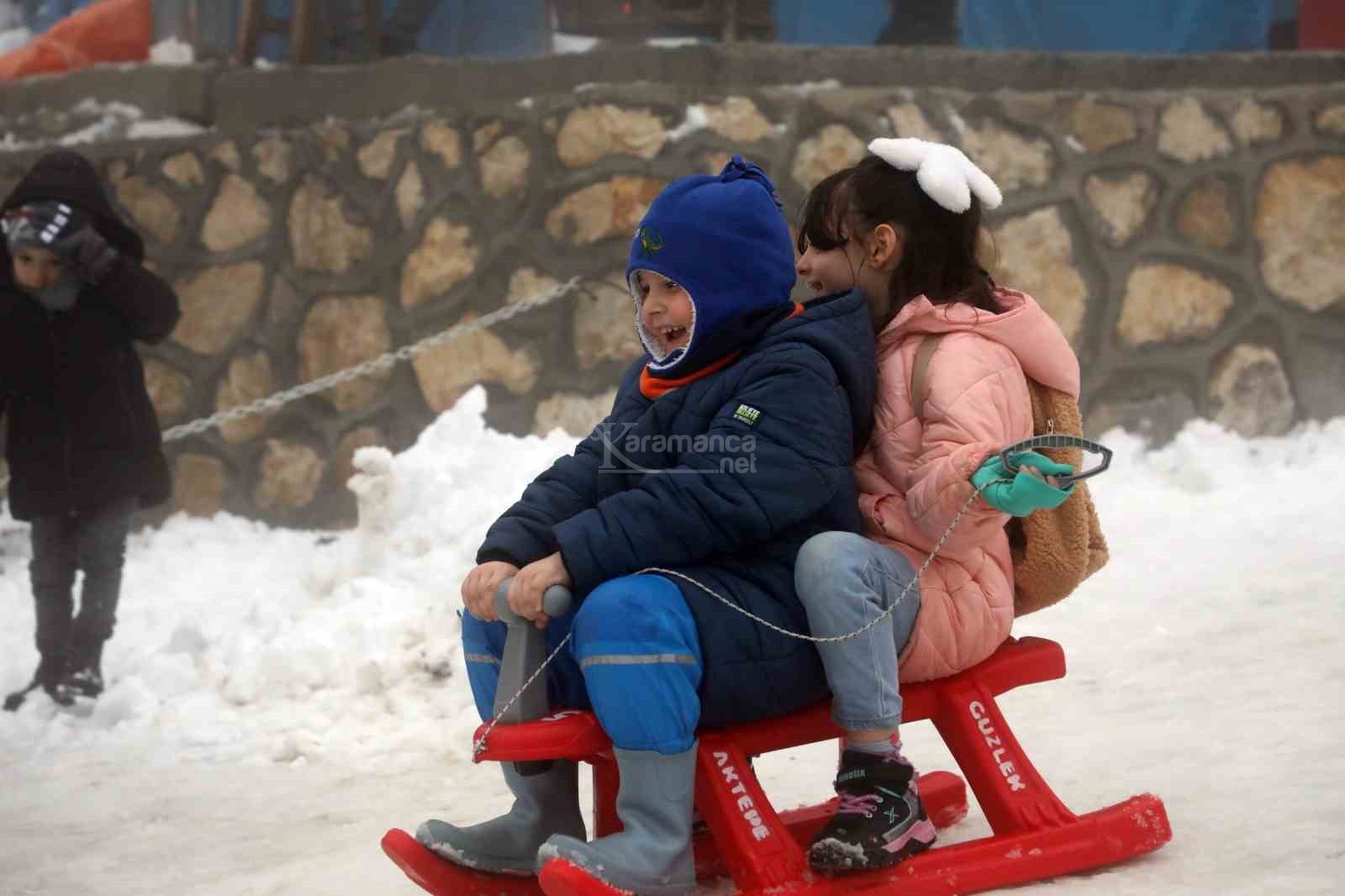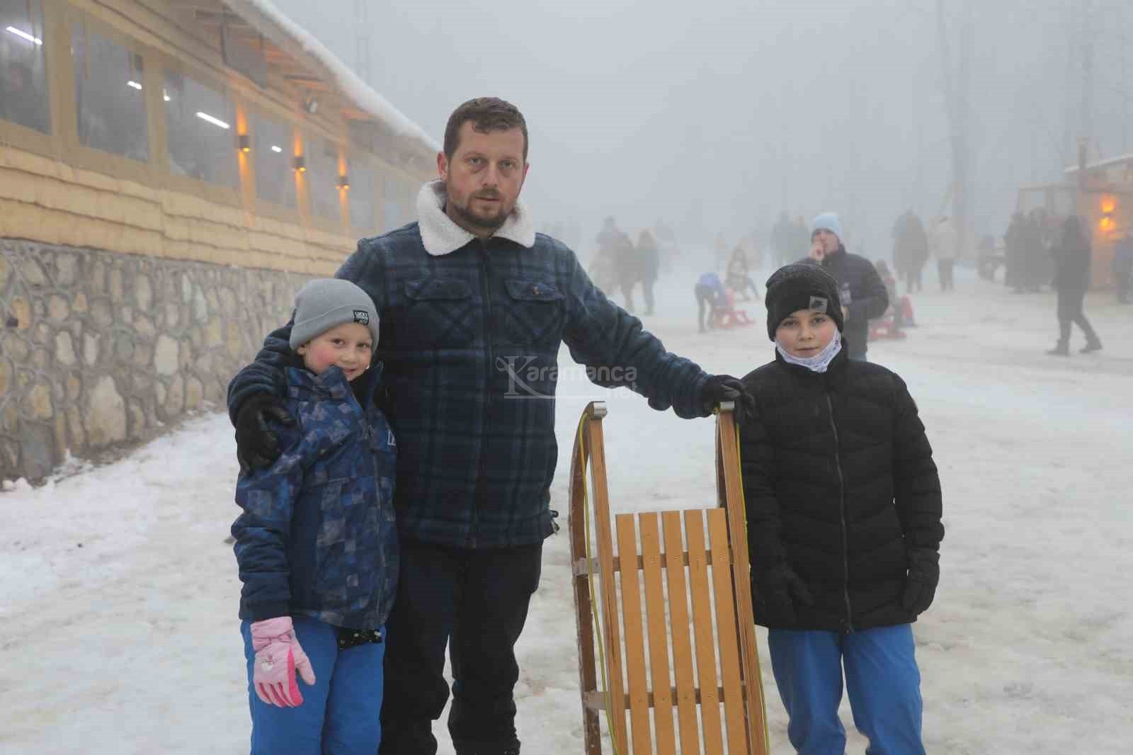 Karnesini aldıktan sonra ailesiyle kızak kaymaya geldiğini aktaran 9 yaşındaki Rüveyda Aslan, "Karnemi aldıktan sonra babam beni buraya getirdi. Burada kızakla kaydık. Diğer bölgeye gidip orada da kaymaya devam edeceğiz. Buraya geldiğimde kardan adam yaptım ve şimdi de kızakla kayıyorum. Burada çok eğleniyorum" dedi.
