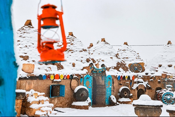 Konik kubbeli evler karla kaplanınca, güzel görüntüler ortaya çıktı