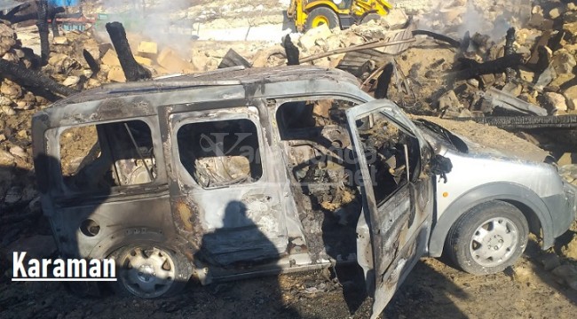 Karaman’da bir evin yanında bulunan depoda çıkan yangın sonrası tarım aletleri ve hafif ticari araç yanarak demir yığınına döndü. Yangın sonrası depo yıkılarak kullanılamaz hale geldi.