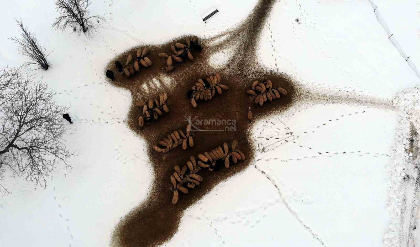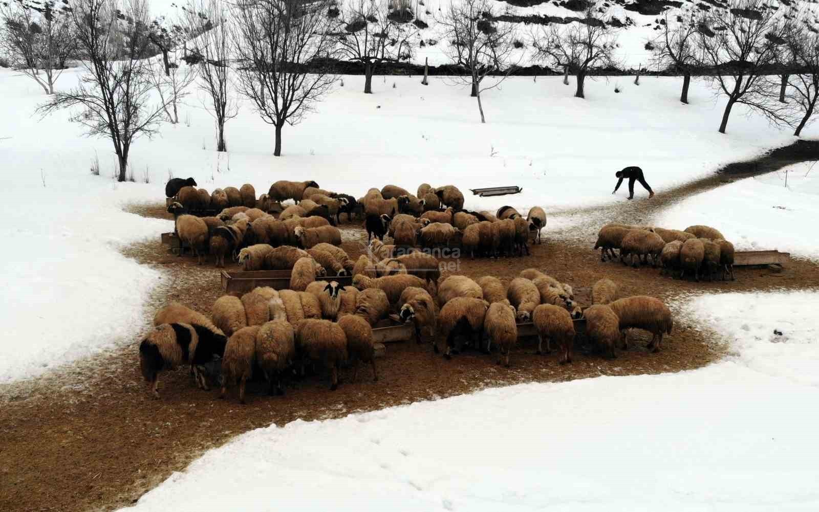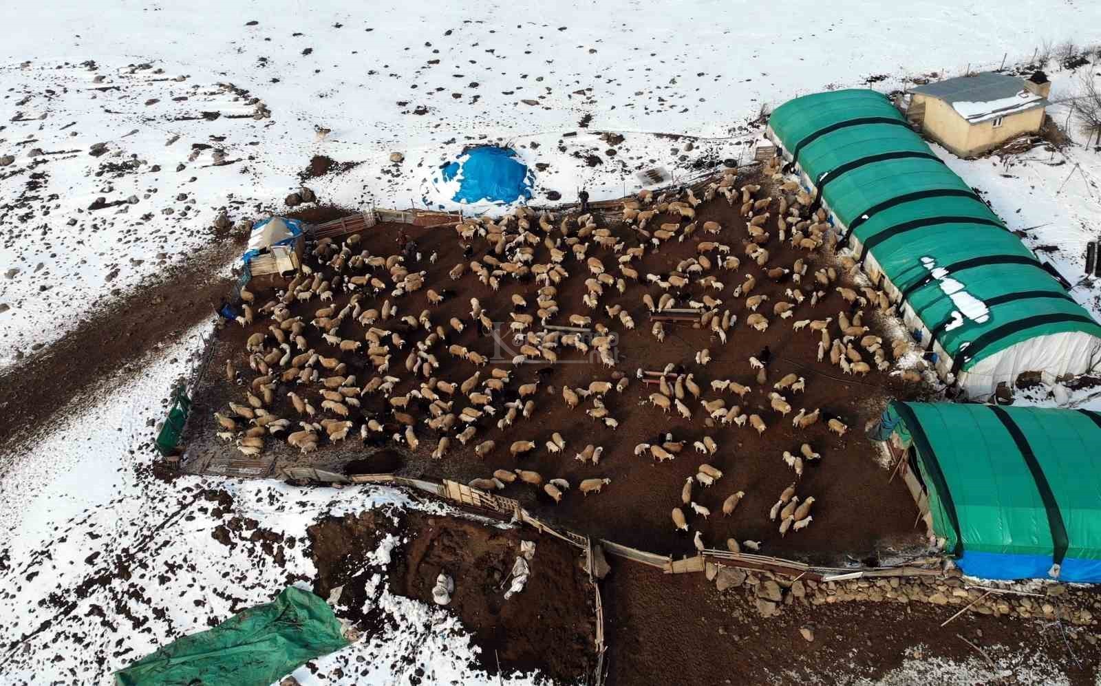 Geçimini küçükbaş yetiştiriciliğinden sağlayan Mecit Doğan, 7 gün 24 saat hayvanların başında durduğunu belirterek, "Gördüğünüz gibi küçükbaş hayvanla meşgulüz. Geçimimizi bu şekilde sağlamaktayız. Ocak 15'den itibaren kuzu doğumları başladı. Aşağı yukarı Mart 15'e kadar doğumlar tamamlanmış olur. Sabahları saat 6, 6 buçuk gibi işimize başlıyoruz. Kuzu emzirme ve daha sonra üç öğün çeşitli yemlerle hayvanları besliyoruz. Akşam 7-8 gibi paydosumuz var ama bizim doğumlardan kaynaklı gece nöbetlerimiz oluyor. Geceleri doğum takibi yapıyoruz. Yani 7-24 bunun bekçiliğini yapmaktayız" dedi.