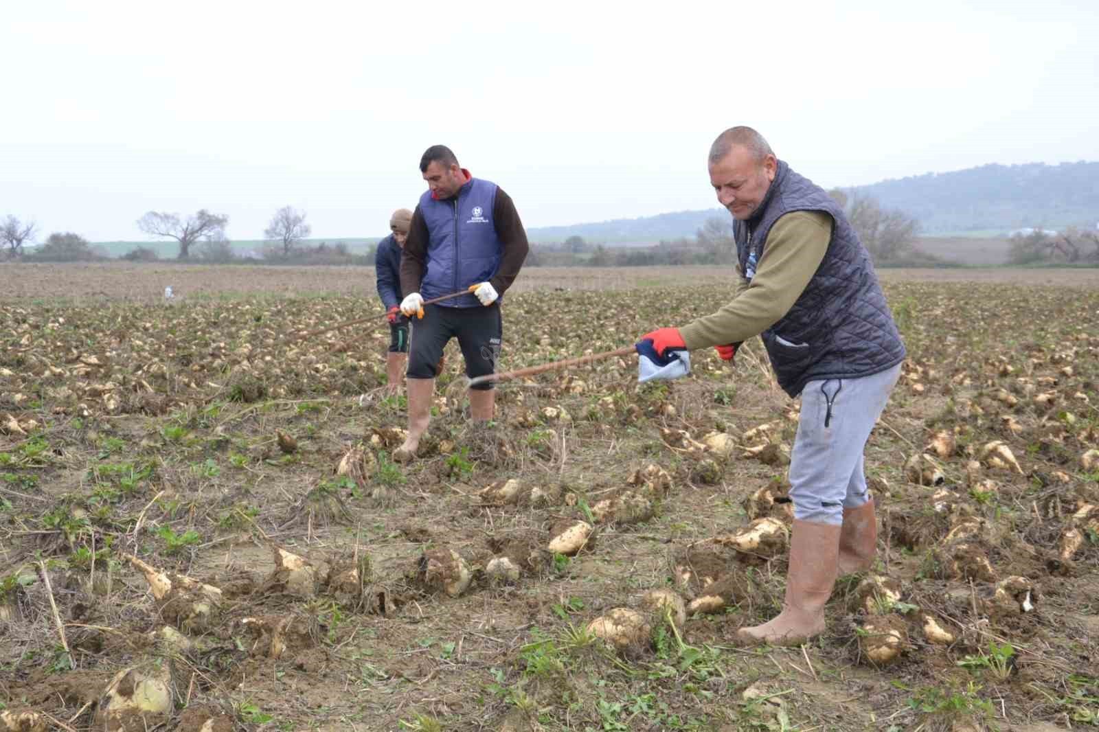 Keşan ilçesinde Ekim ayında tamamlanması gereken şeker pancarı söküm işlemi, yağan yağmurlar nedeniyle gecikirken, şeker pancarı üreticileri ürünlerini sökmek için insan gücü kullanıyor. Keşan ilçesine bağlı Karlıköy'de pancar eken çiftçi Yusuf Atılgan, 2023 yılının Şubat ayında başladıkları şeker pancarında Aralık ayı olmasına rağmen söküm mücadelesi verdiklerini dile getirdi. Atılgan şunları söyledi: