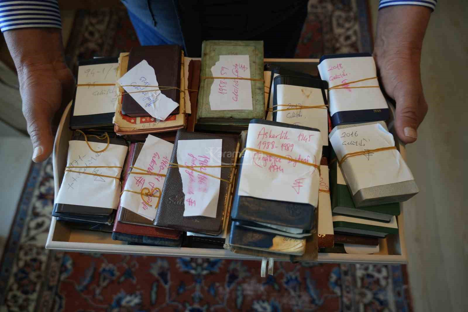 Toker'in askerlik hatıralarından çocuklarının doğduğu saate, Türkiye'nin ve Kocaeli'nin ilk kadın belediye başkanı Leyla Atakan'ın hayatını kaybettiği günden mevsimin ilk kar yağışlarına kadar not ettiği günlükler, Uzuntarla Çerkes Müzesinde sergilenecek.