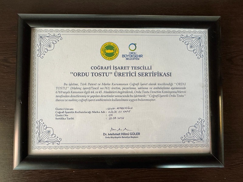 İlk olarak 1958’de Kemal ve Zeki Yamaner kuzenler tarafından yapılan Ordu tostu, 4 yıl önce Sanayi ve Teknoloji Bakanlığı Türk Patent ve Marka Kurumu tarafından Coğrafi İşaret ve Geleneksel Ürün başlığıyla tescillendi. Altınordu ilçesinde 3 metrekarelik dükkanında 40 yıldır 'Ordu tostu' yapan Engin Atabeyoğlu, tost yapmayı Kemal Yamaner’den öğrendiğini ve yaklaşık 4 yıl önce de coğrafi işaret aldığını belirterek, “Hazırladığım Ordu tostlarını Türkiye’nin her yerine gönderiyorum.