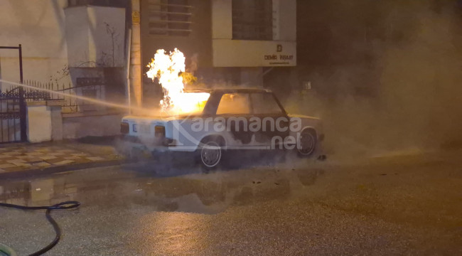 Park halindeki otomobil yandı