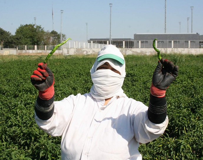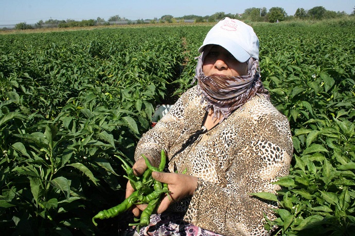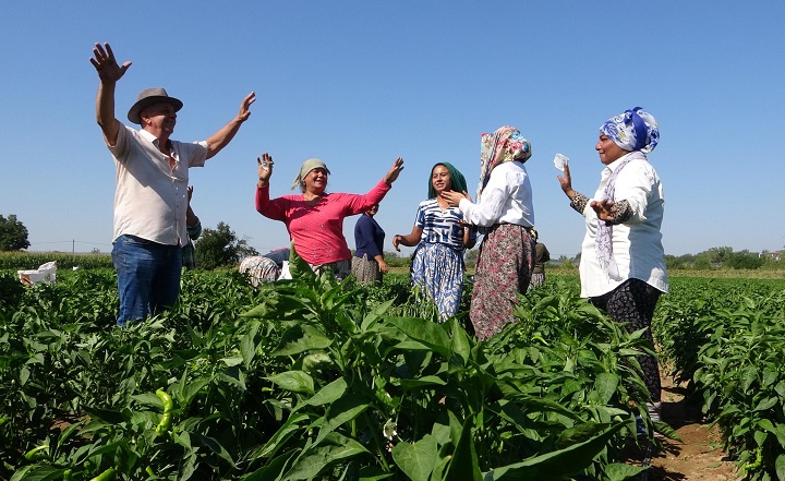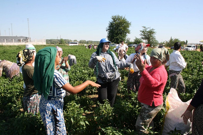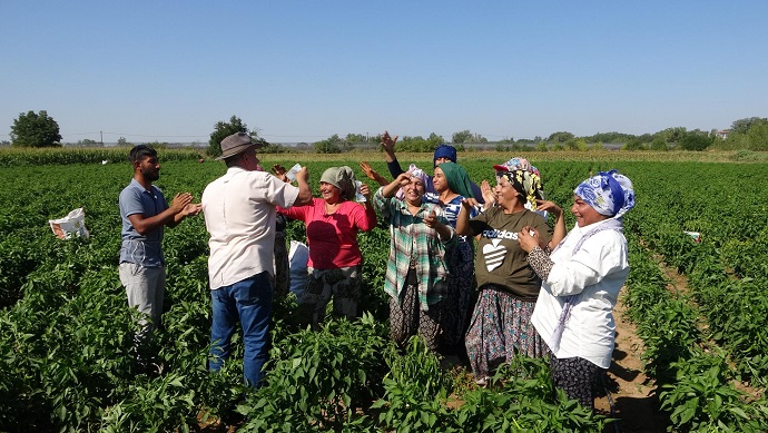 Hasat işçilerinden Belgin Özdemir (44) ise mutlu bir ortamda hasat yaptıklarını dile getirerek, "Biz, böyle işlerde çok gururluyuz. Oynarken biber toplarız, helal kazanırız, haram bir şey istemeyiz. Yirmi seneden beri topluyorum. Arkadaşlarımızla birlikte mutluyuz. Yani bizim zanaatımız biber toplamak kazmaktır" dedi.