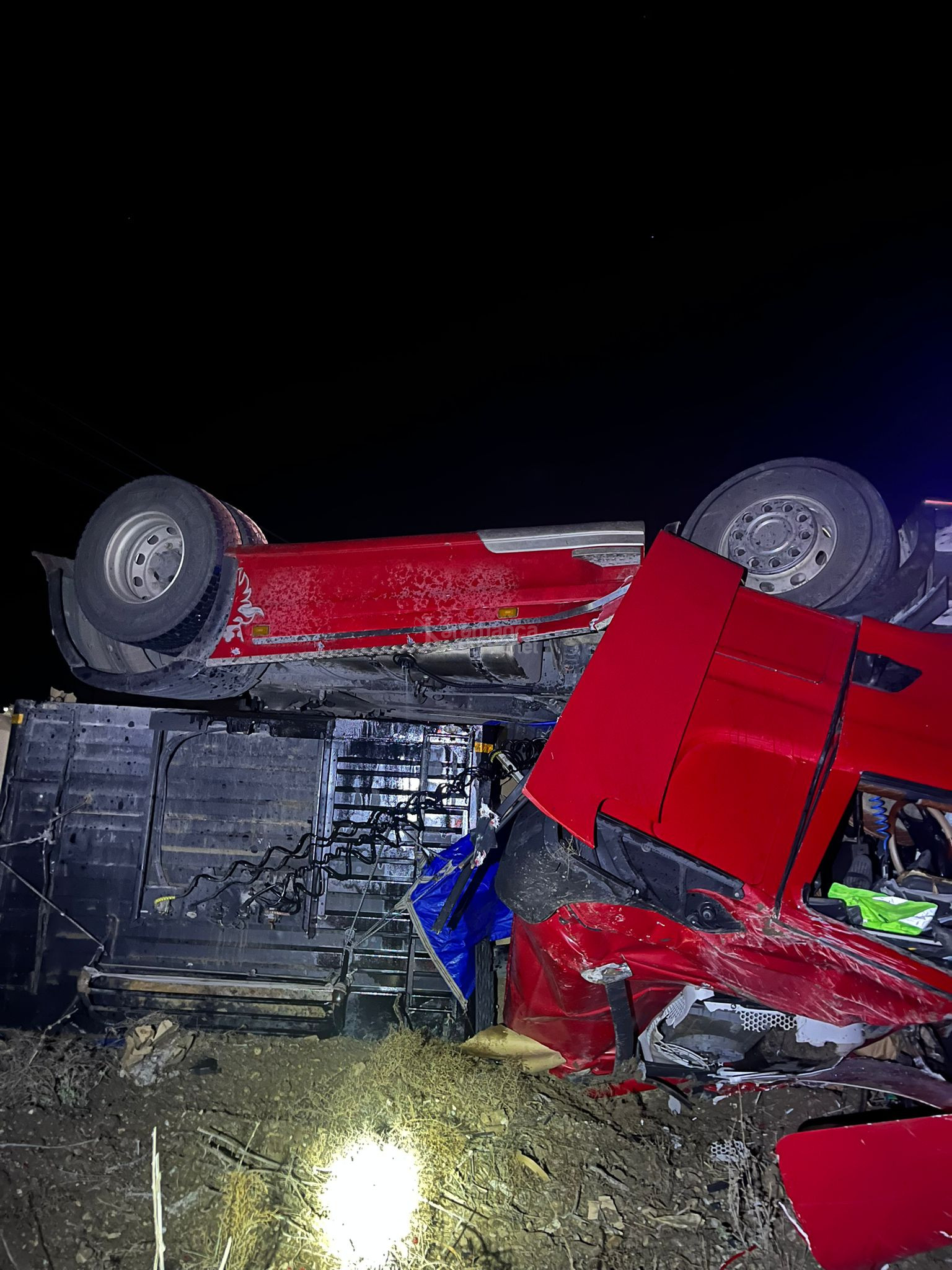 Ahmet Zorlu yönetimindeki 03 FY 420 plakalı TIR, sürücüsünün kontrolünden çıkıp, refüjü aşıp şarampole devrildi. İhbarla kaza yerine polis, itfaiye ve sağlık ekibi sevk edildi.